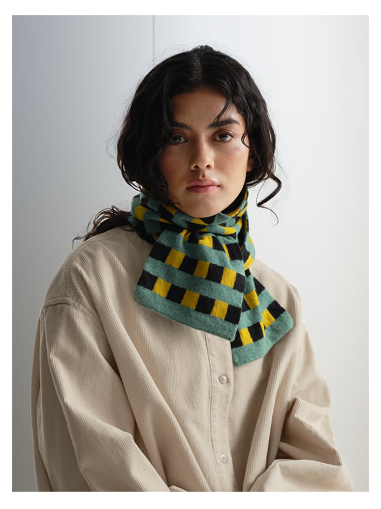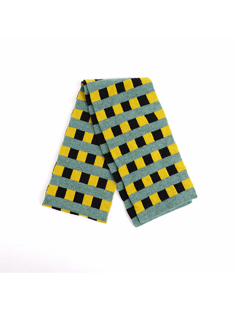 JO GORDON Small Check & Stripe Scarf 羊羔毛彩色条纹格围巾