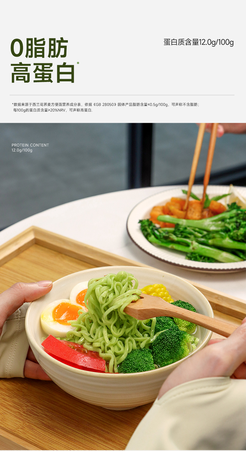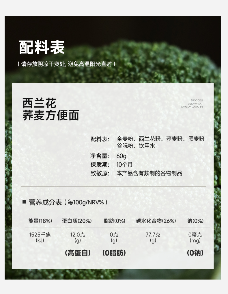 西兰花荞麦方便面 配料表干净简单,非油炸面饼,0脂0钠0防腐剂0色素,少油腻感,口味清淡爽口