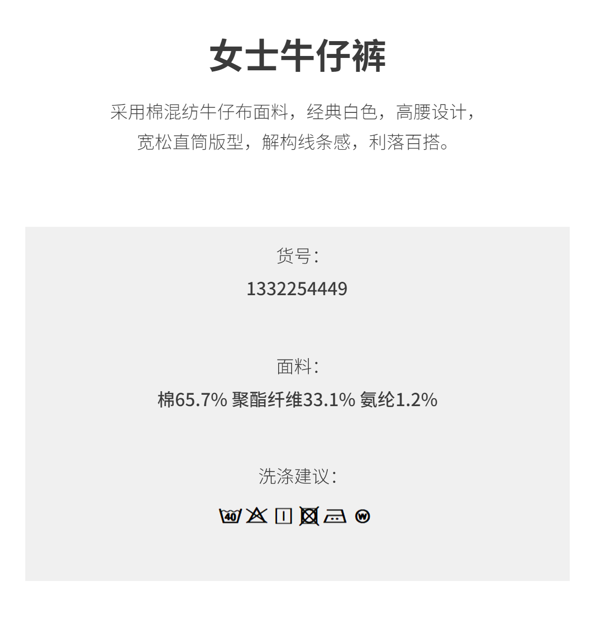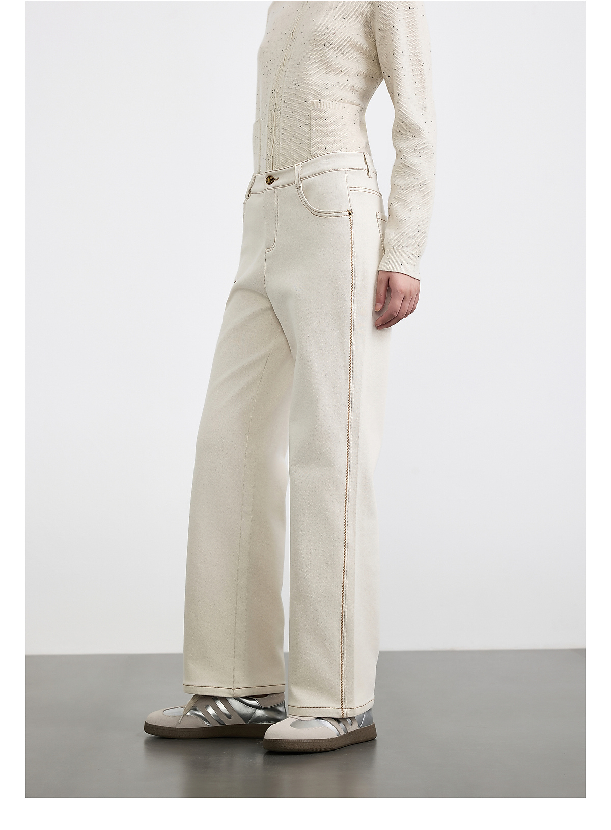 商场同款PURE TOUCH女装25秋冬新款高腰牛仔裤棉混纺宽松直筒长裤
