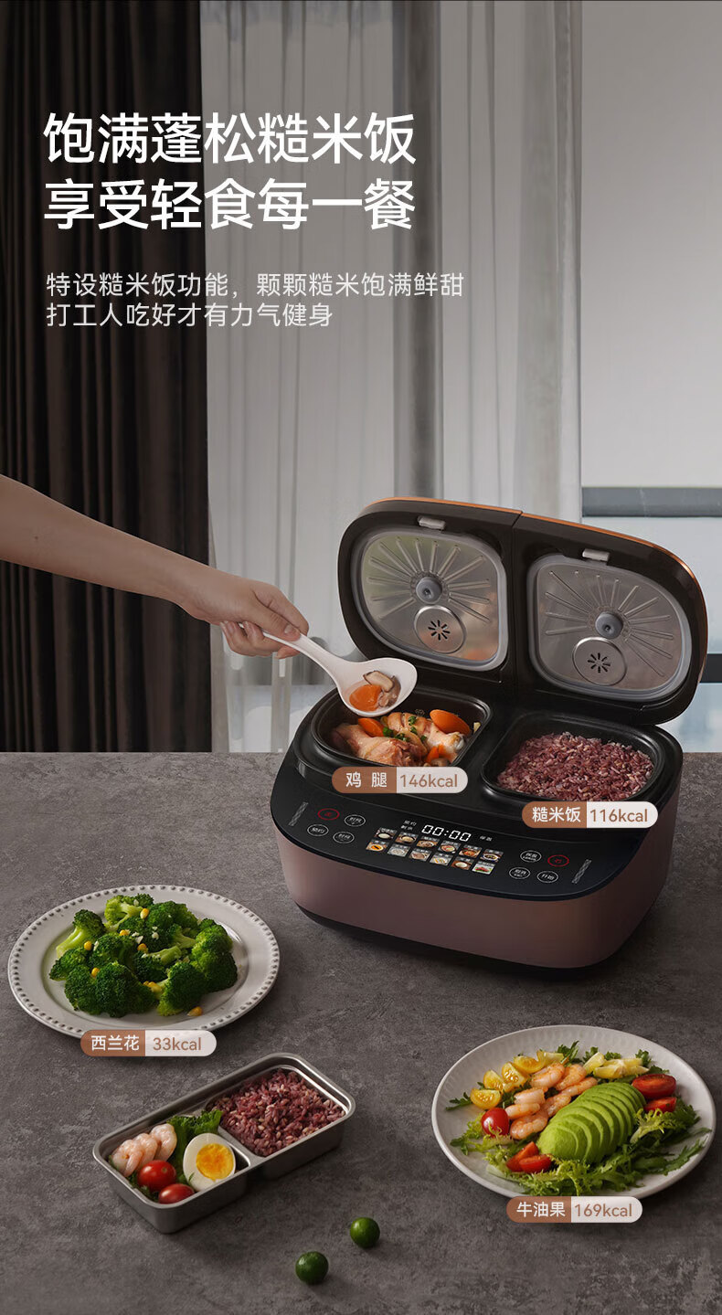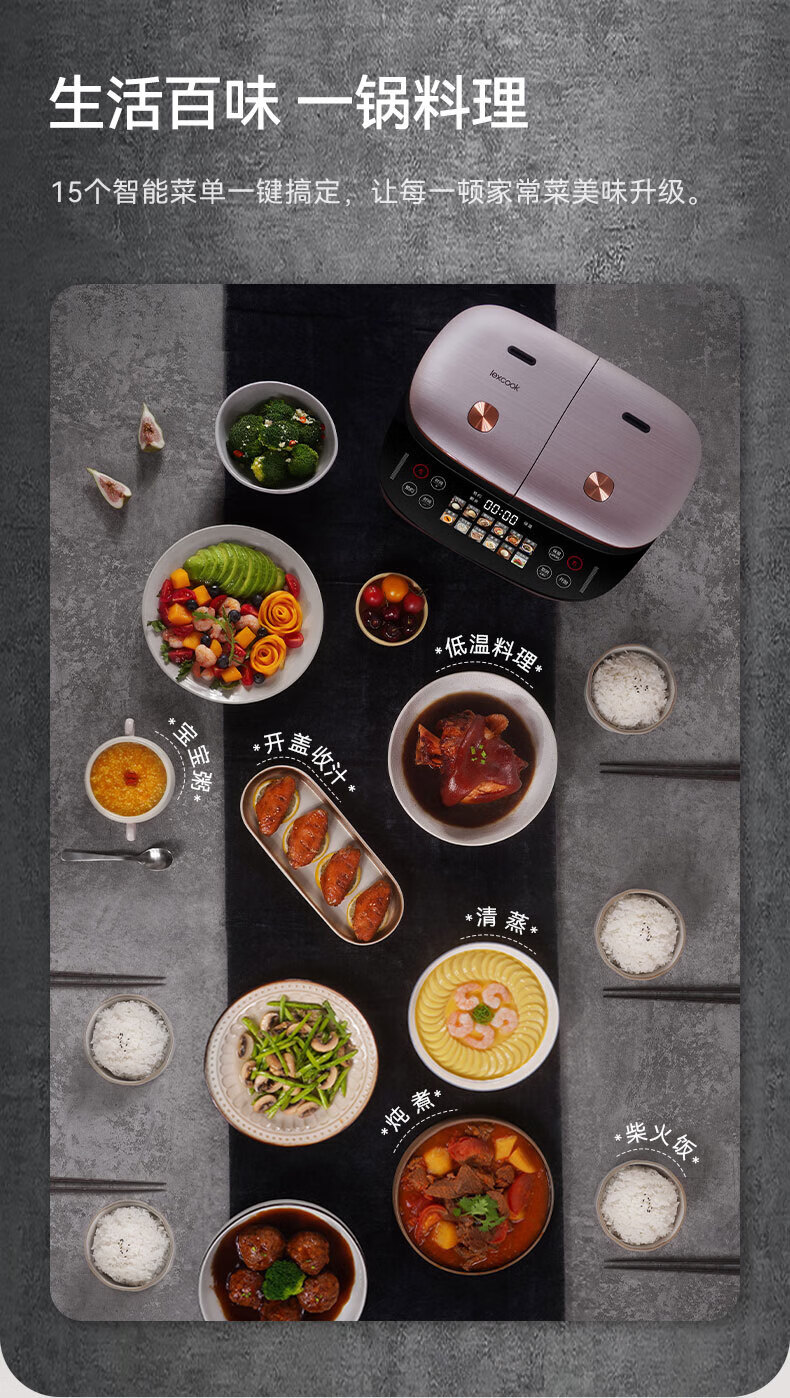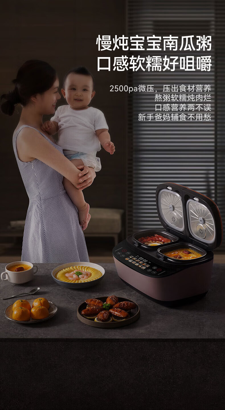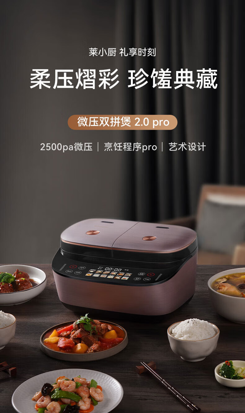 莱小厨(Lexcook)微压双胆电饭煲3L电饭锅智能预约蒸煮煲汤一体多功能电饭煲2-4人 淡绯紫(6系Pro)TC602