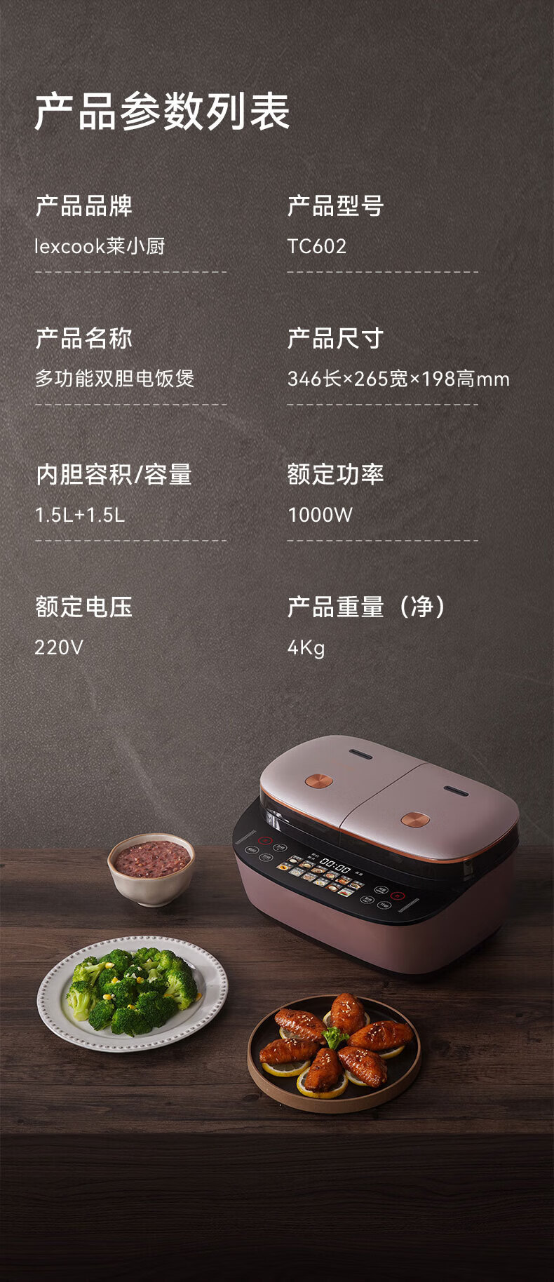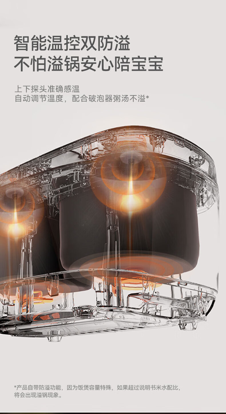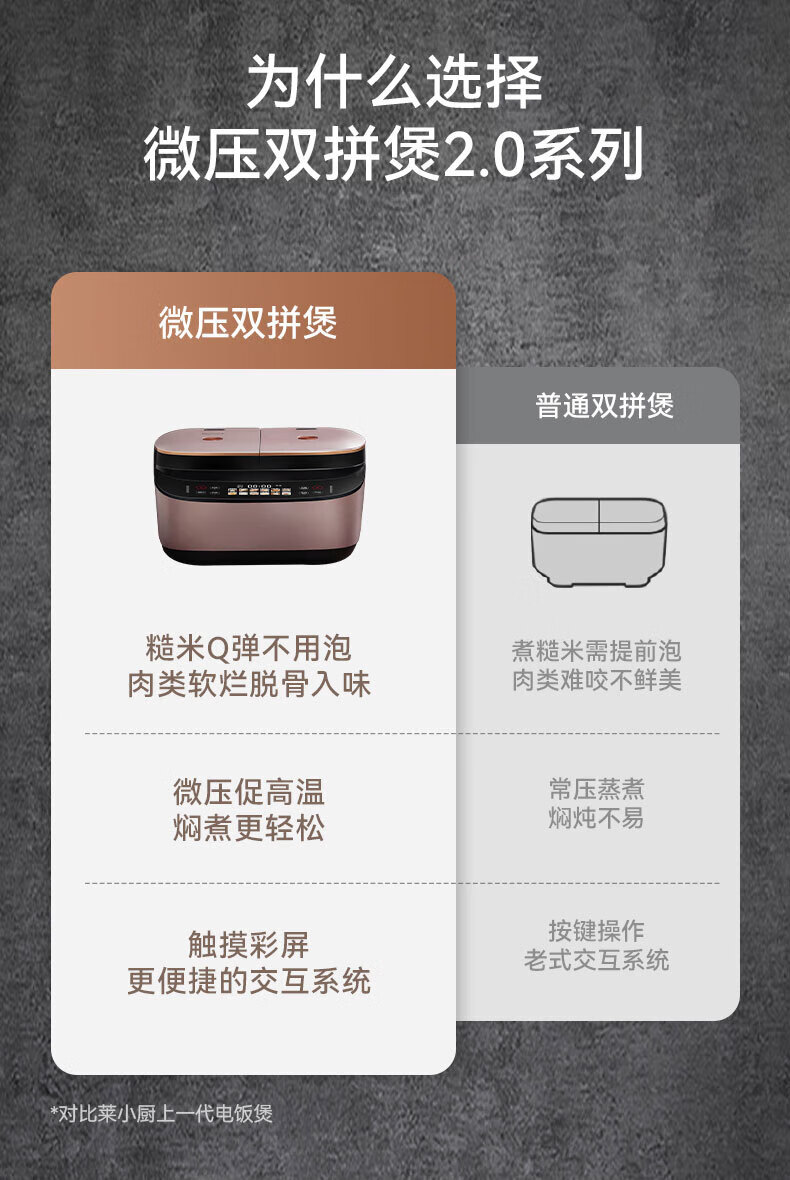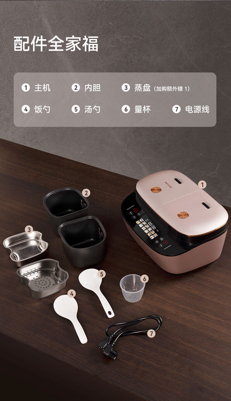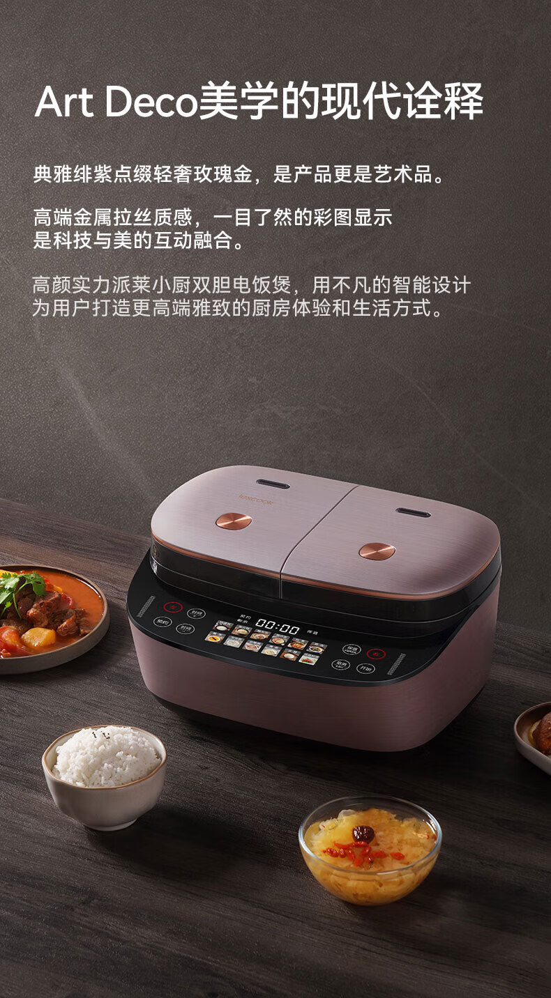 莱小厨(Lexcook)微压双胆电饭煲3L电饭锅智能预约蒸煮煲汤一体多功能电饭煲2-4人 淡绯紫(6系Pro)TC602
