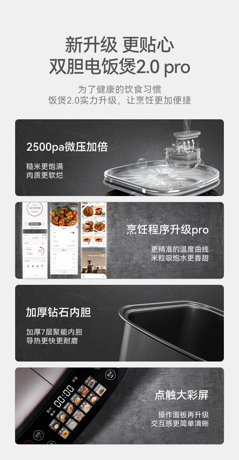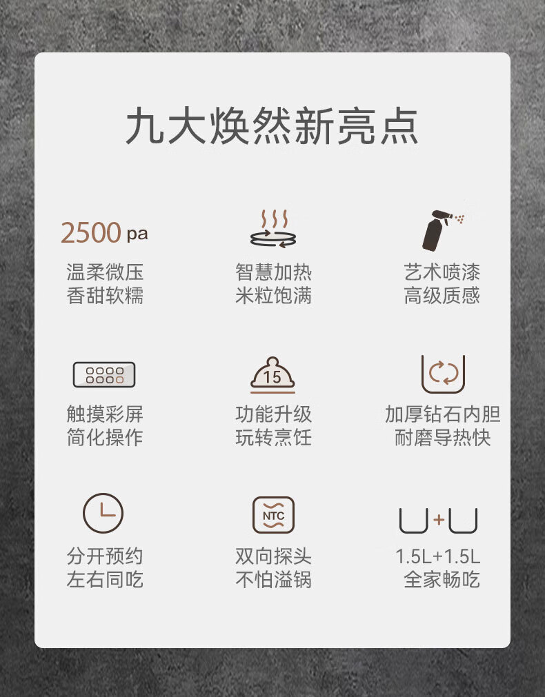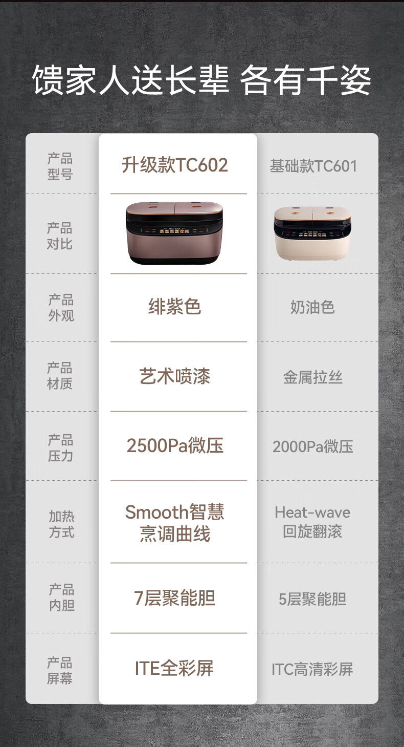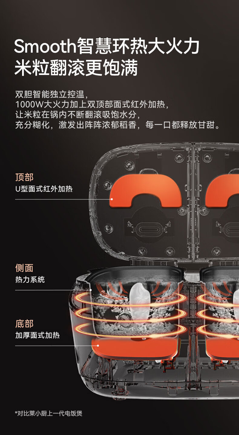 莱小厨(Lexcook)微压双胆电饭煲3L电饭锅智能预约蒸煮煲汤一体多功能电饭煲2-4人 淡绯紫(6系Pro)TC602