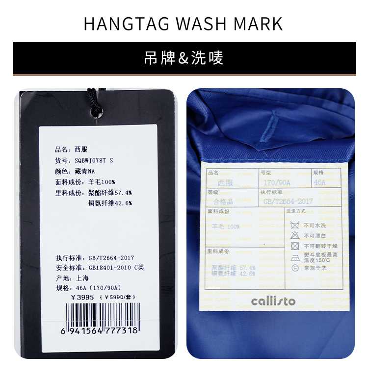 callisto绵羊毛混纺西服 STBWJ041C