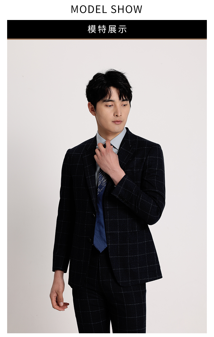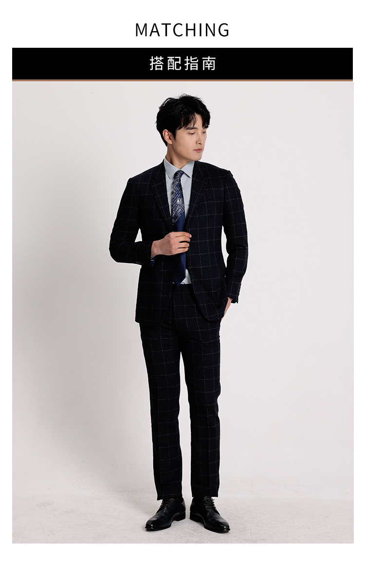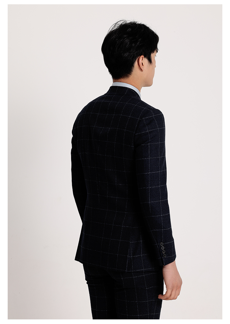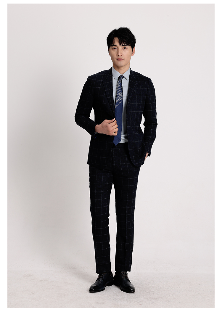 callisto藏青全羊毛窗型格纹西服