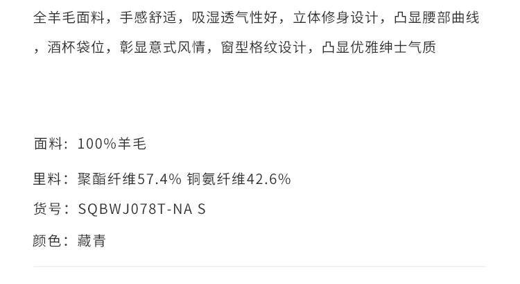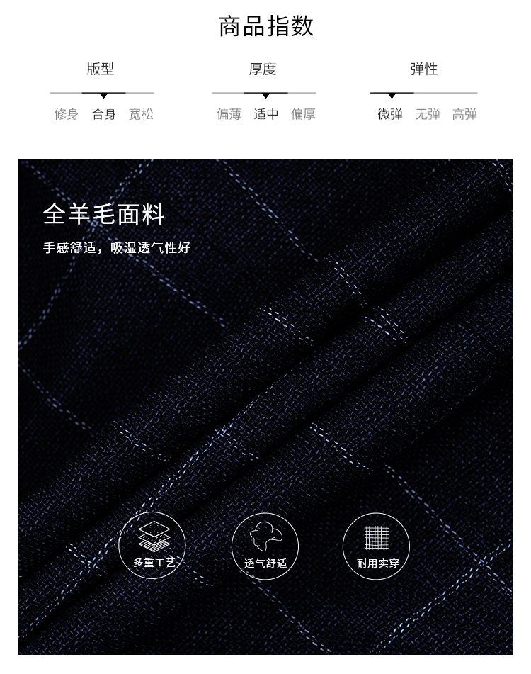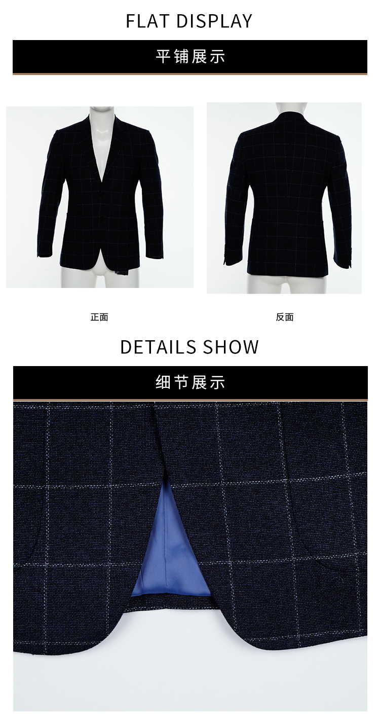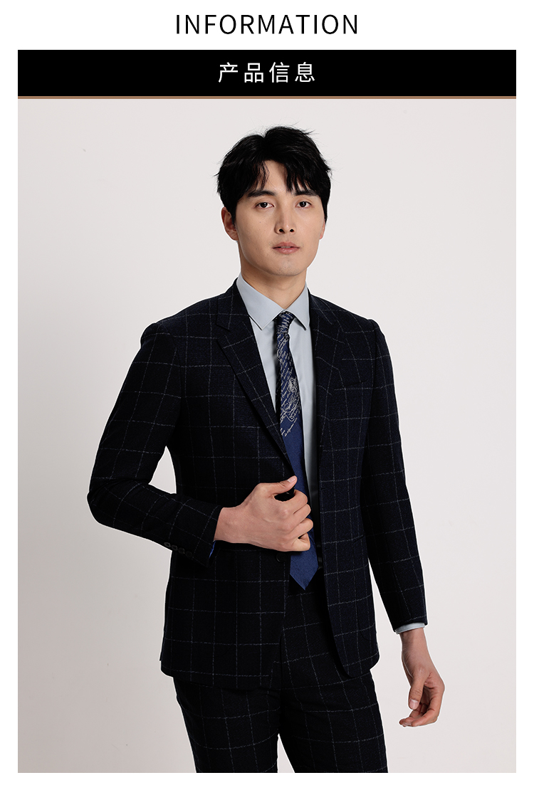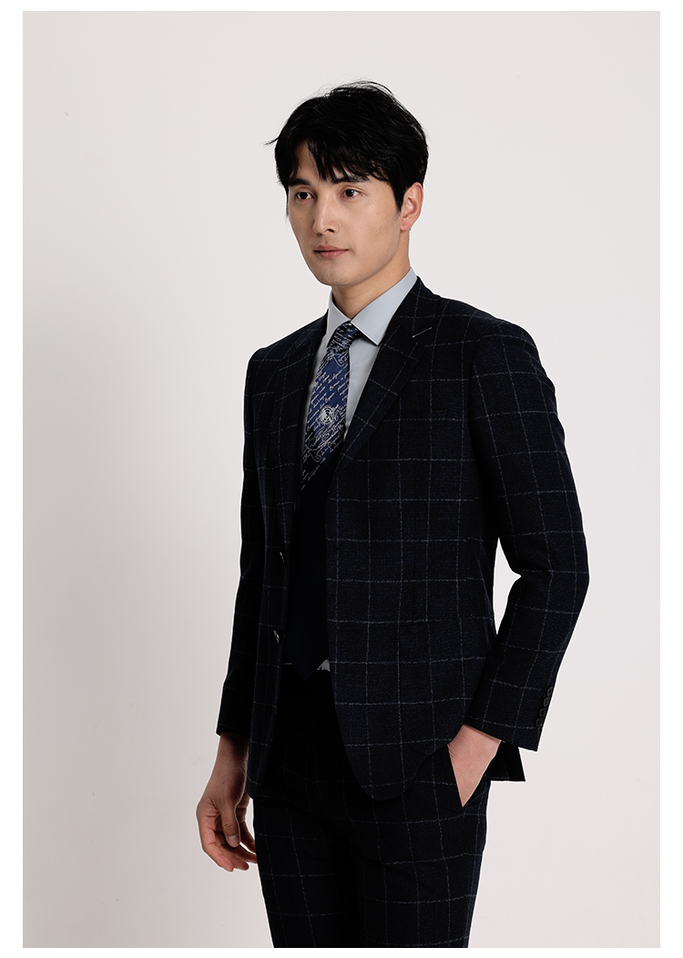 callisto藏青全羊毛窗型格纹西服