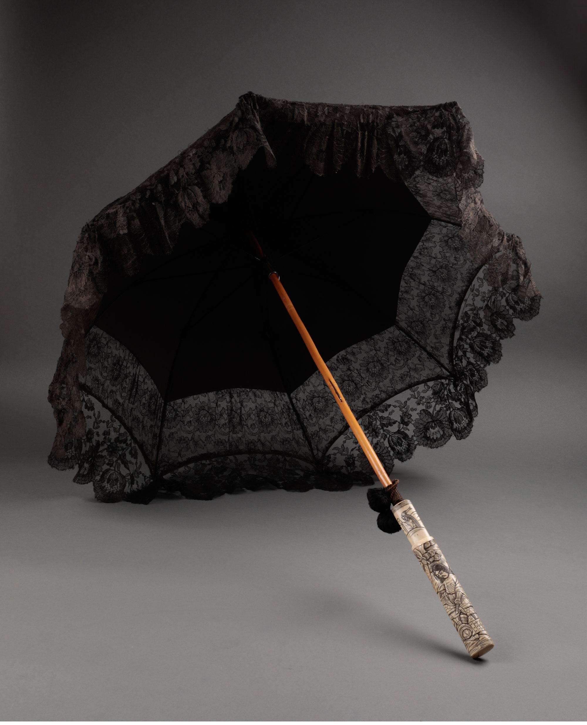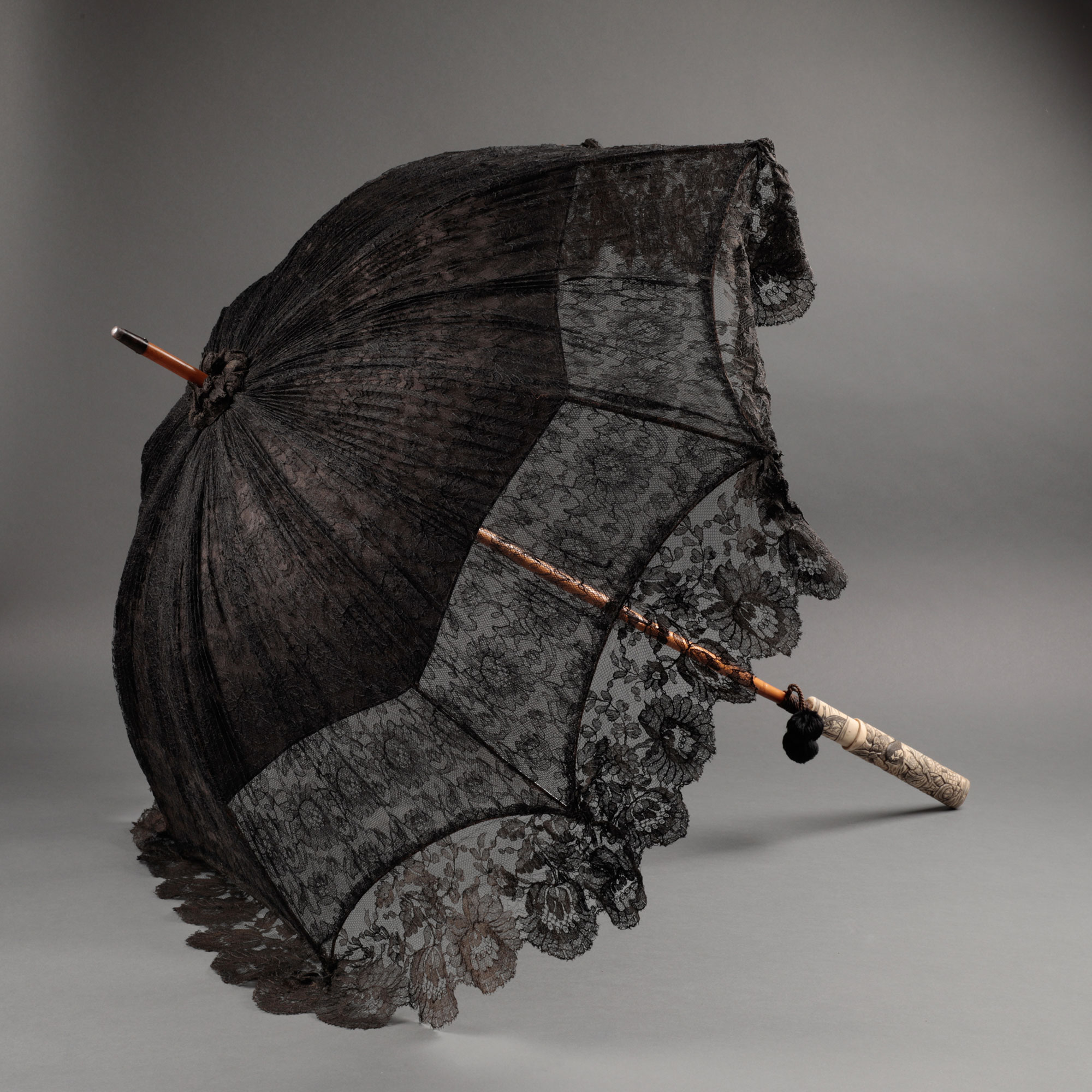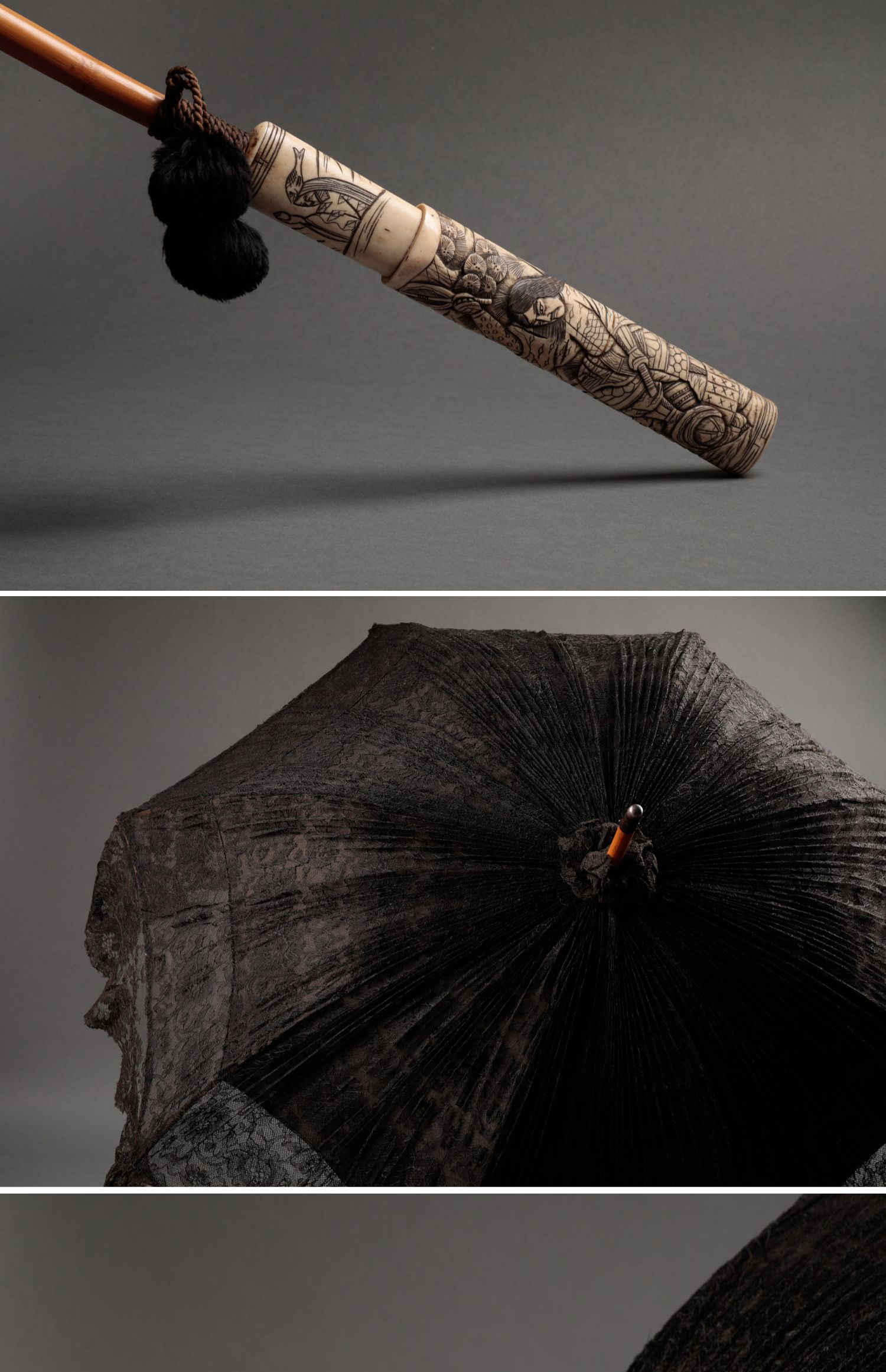 独角鹿西洋古董牛骨精雕伞柄花卉黑色尚蒂依蕾丝伞面古典淑女阳伞