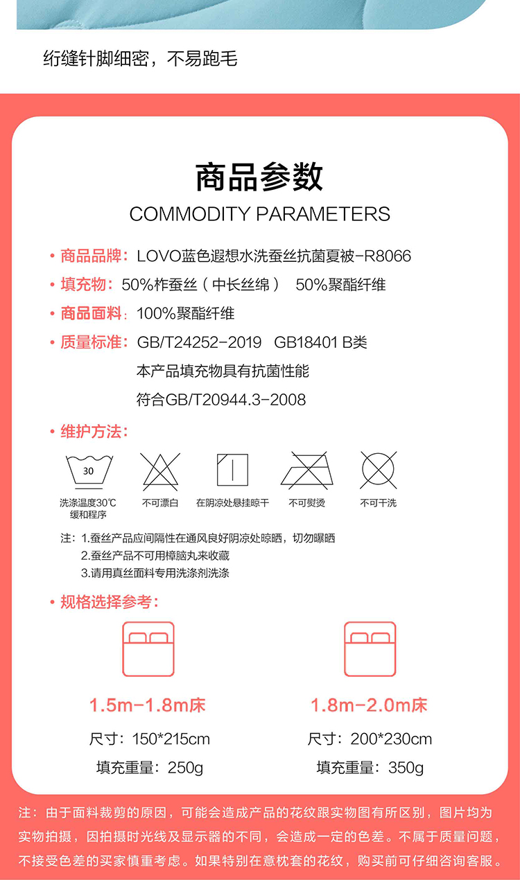 LOVO(罗莱旗下出品) 蓝色遐想水洗蚕丝被200*230cm
