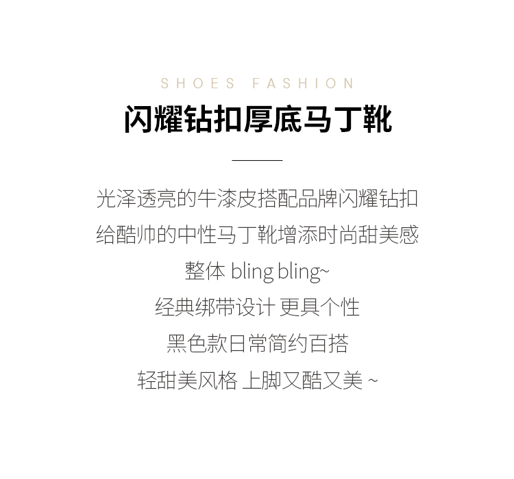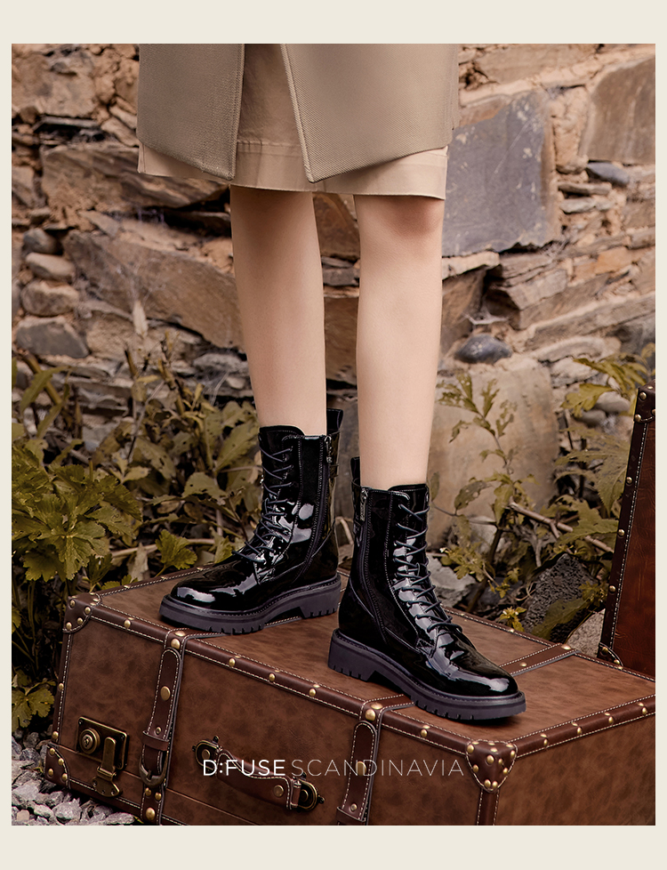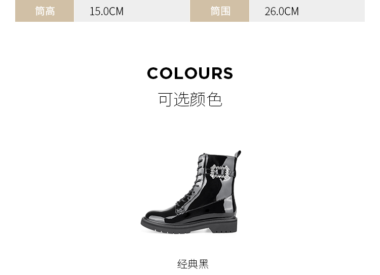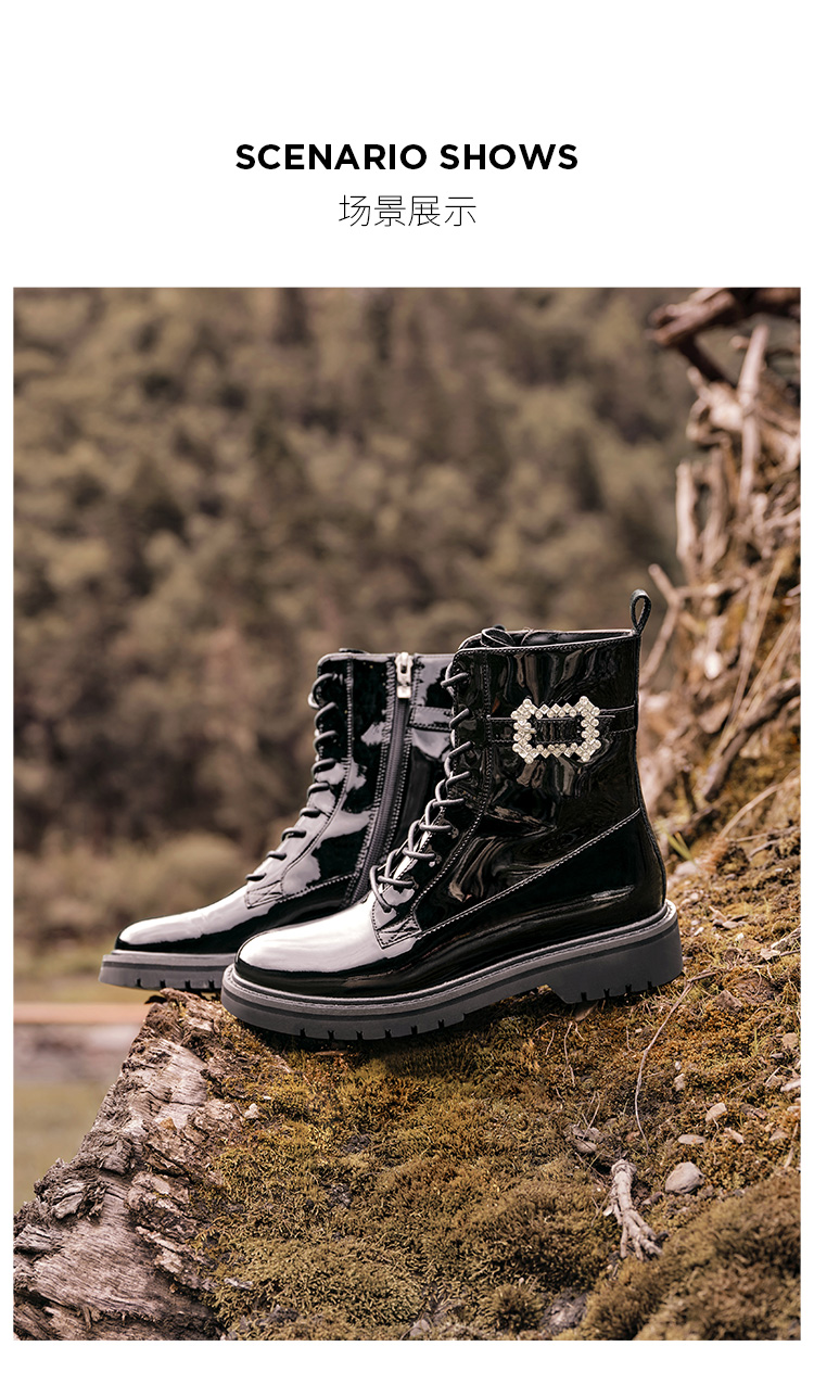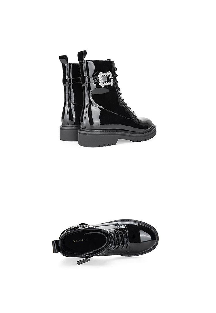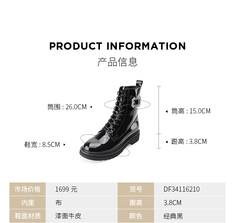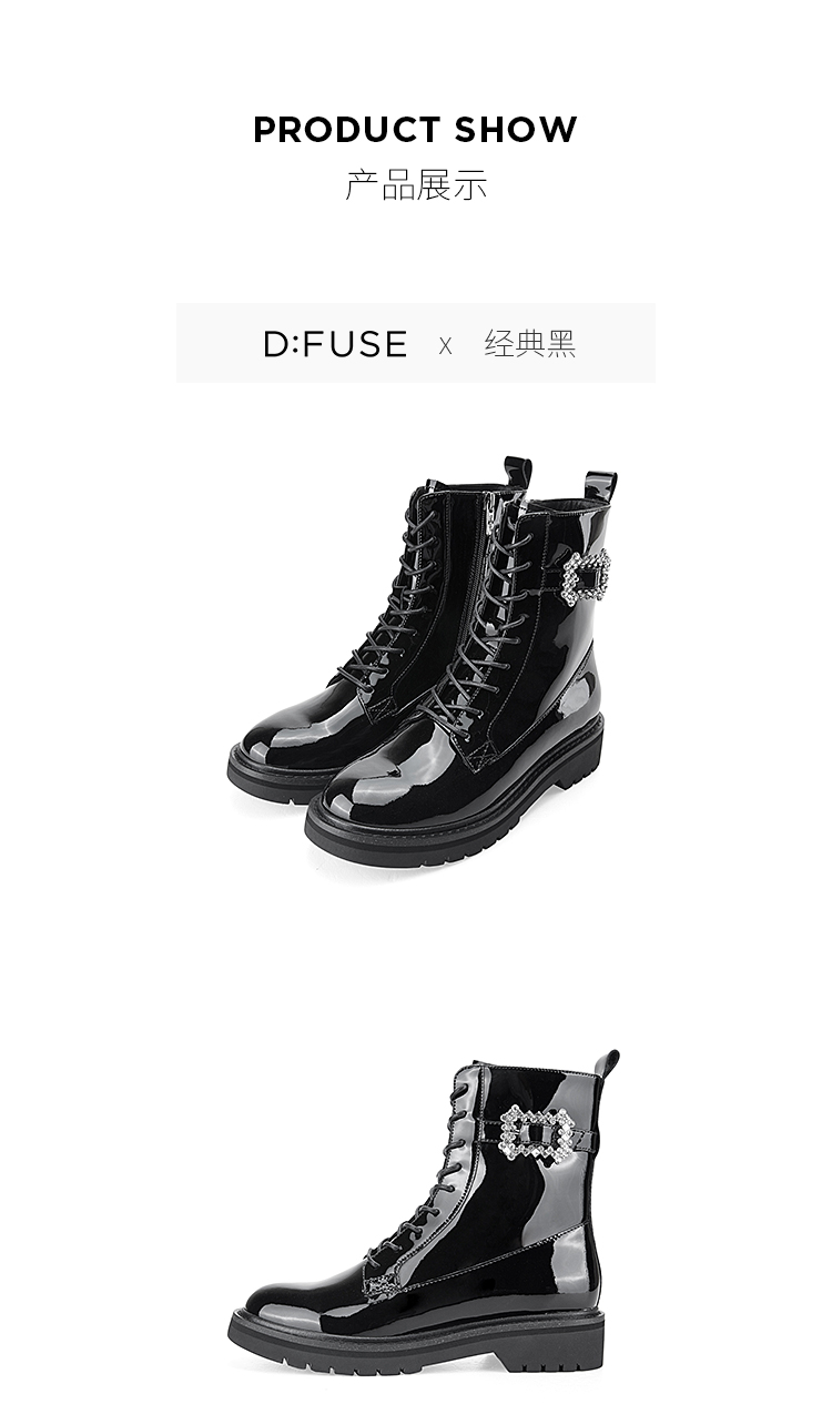 Dfuse迪芙斯冬季新款漆皮圆头钻扣绑带马丁靴短靴DF34116210