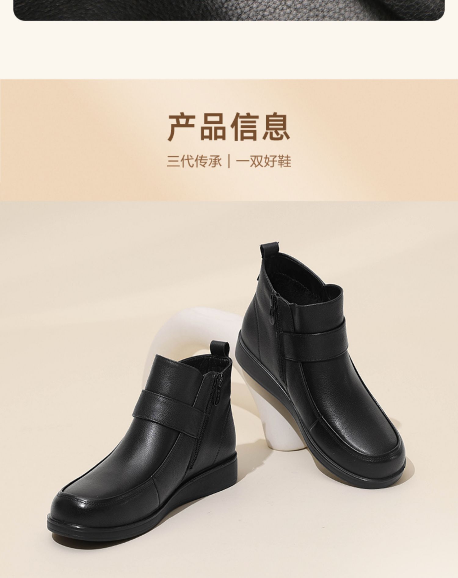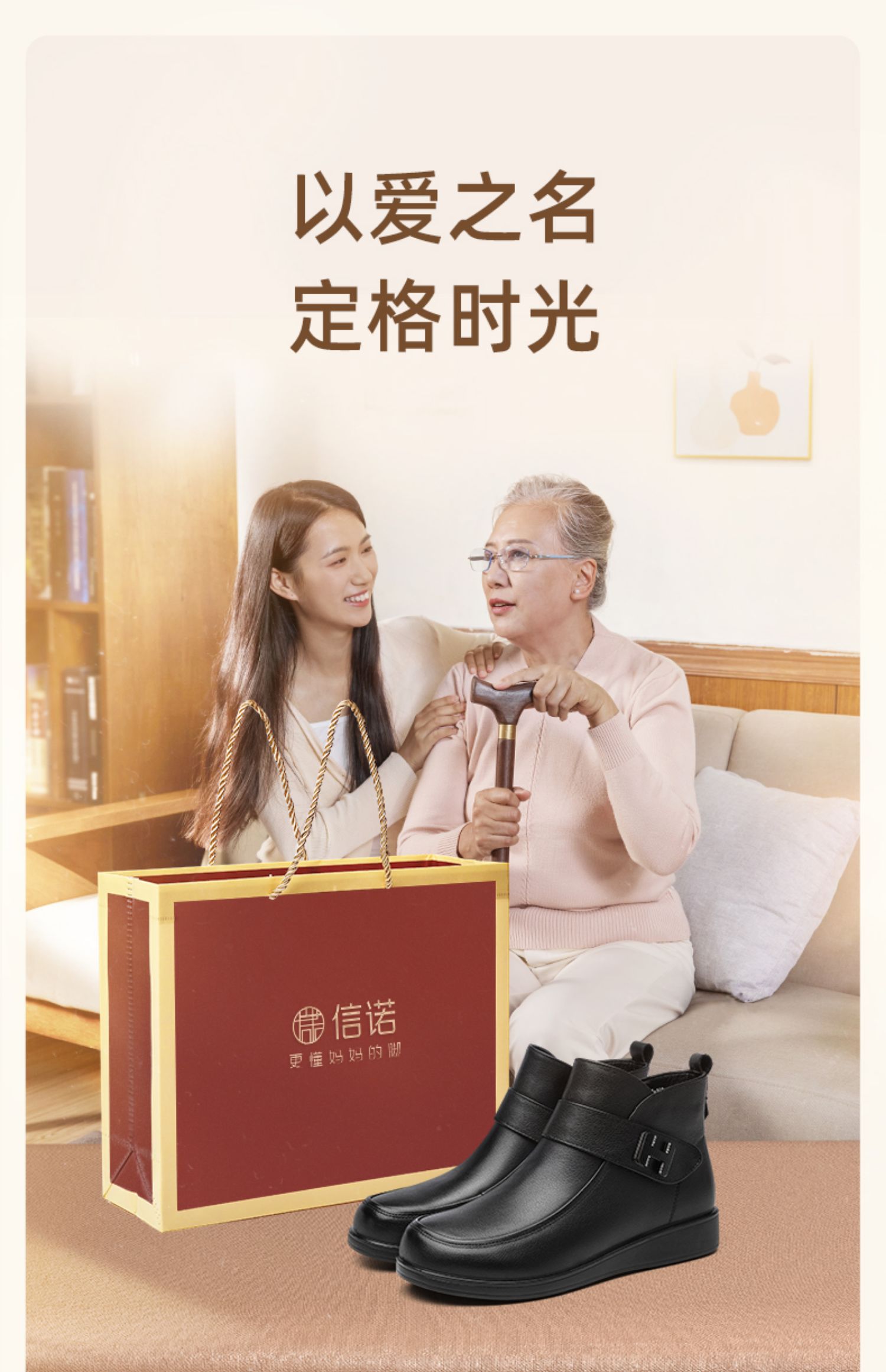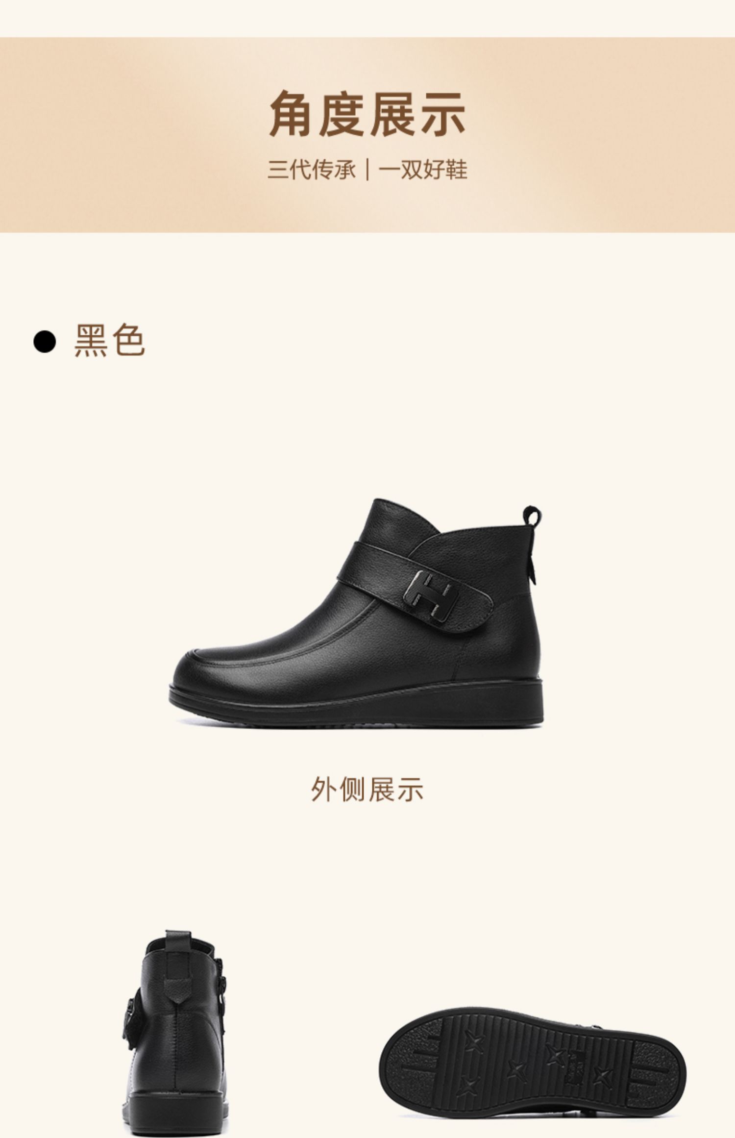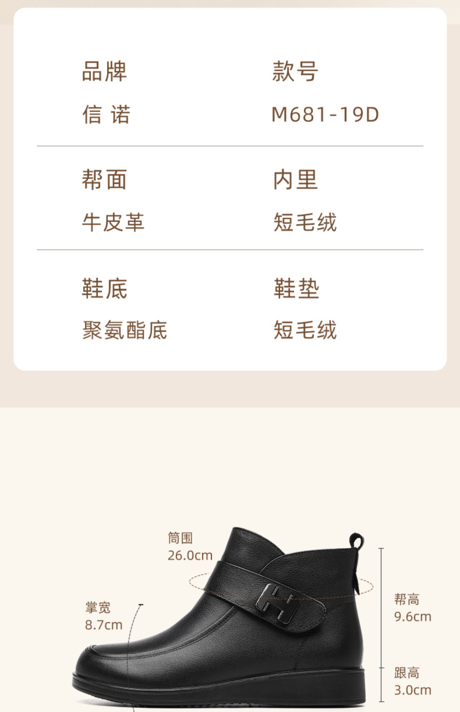 信诺软底真皮短靴女款中老年加绒妈妈鞋2024新款冬季棉鞋平底皮鞋M681-19D