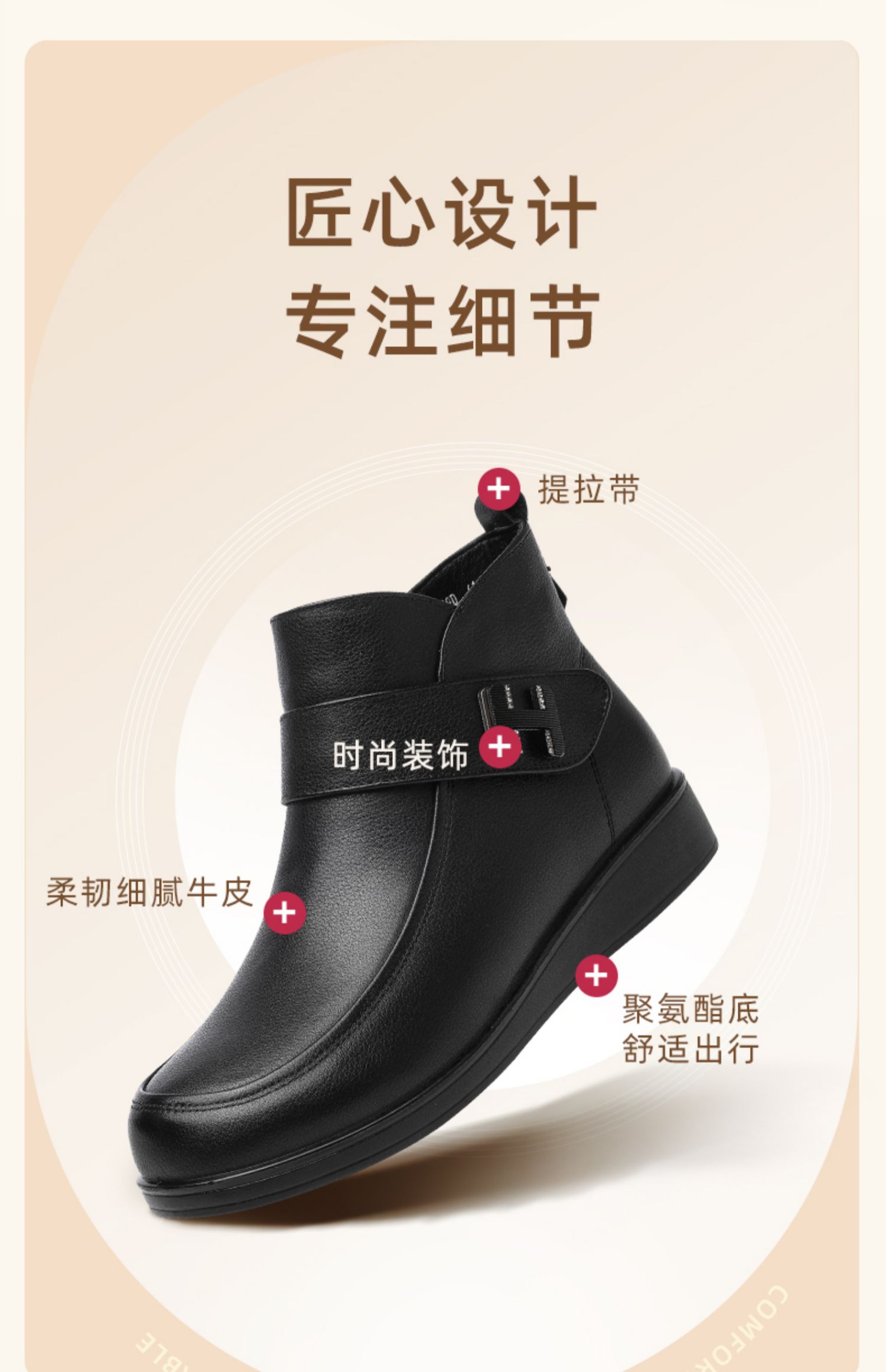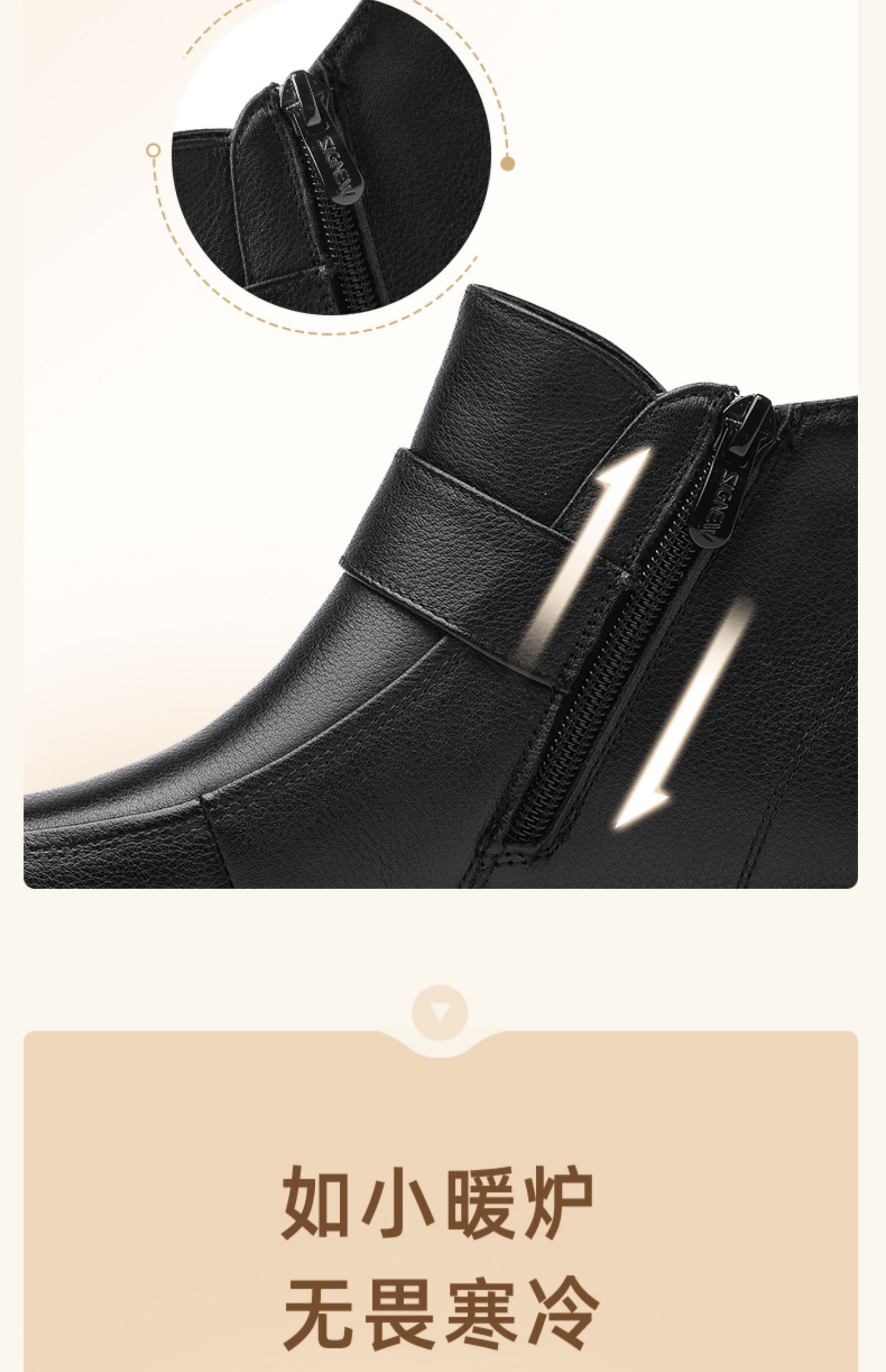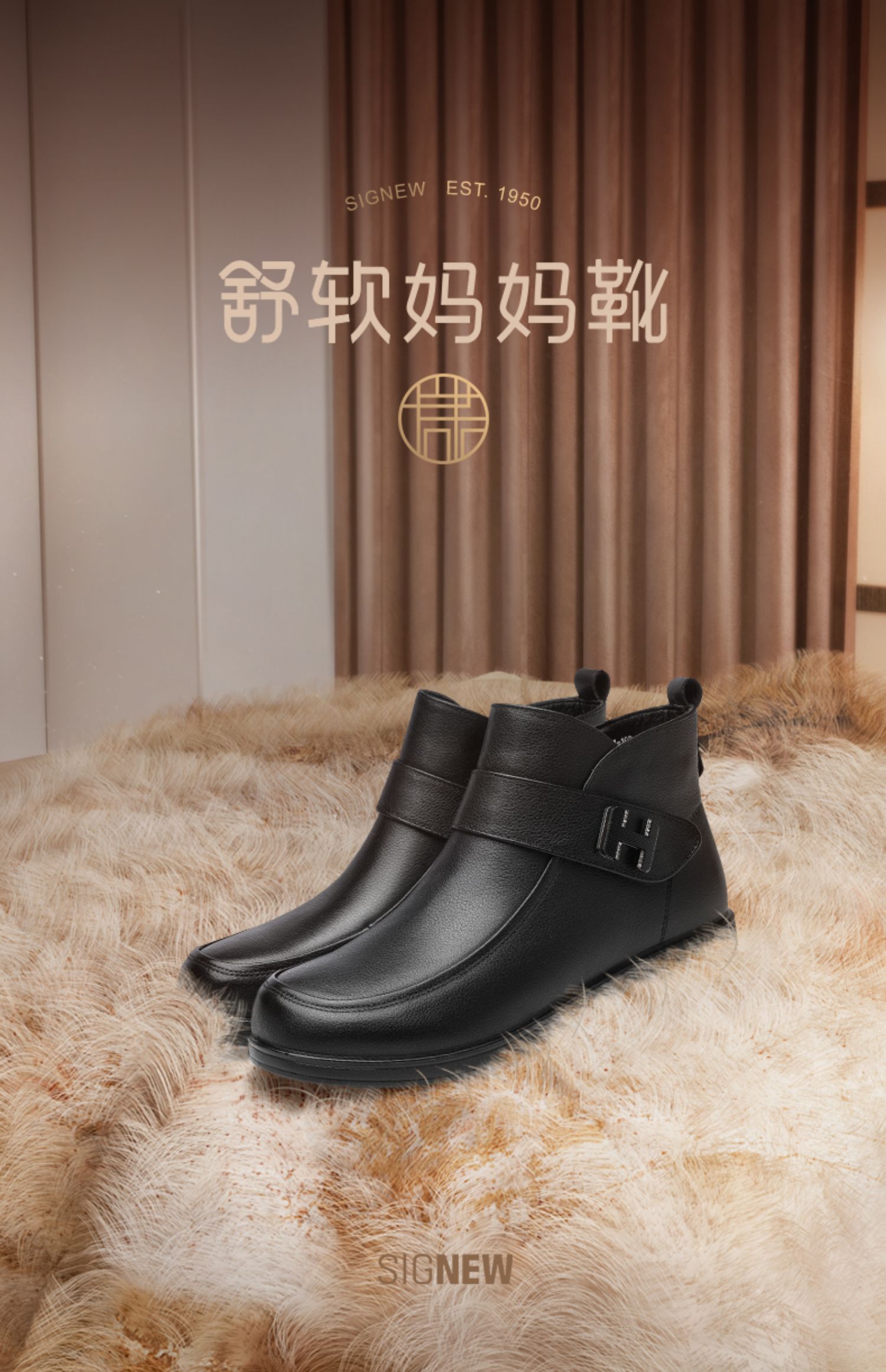信诺软底真皮短靴女款中老年加绒妈妈鞋2024新款冬季棉鞋平底皮鞋M681-19D