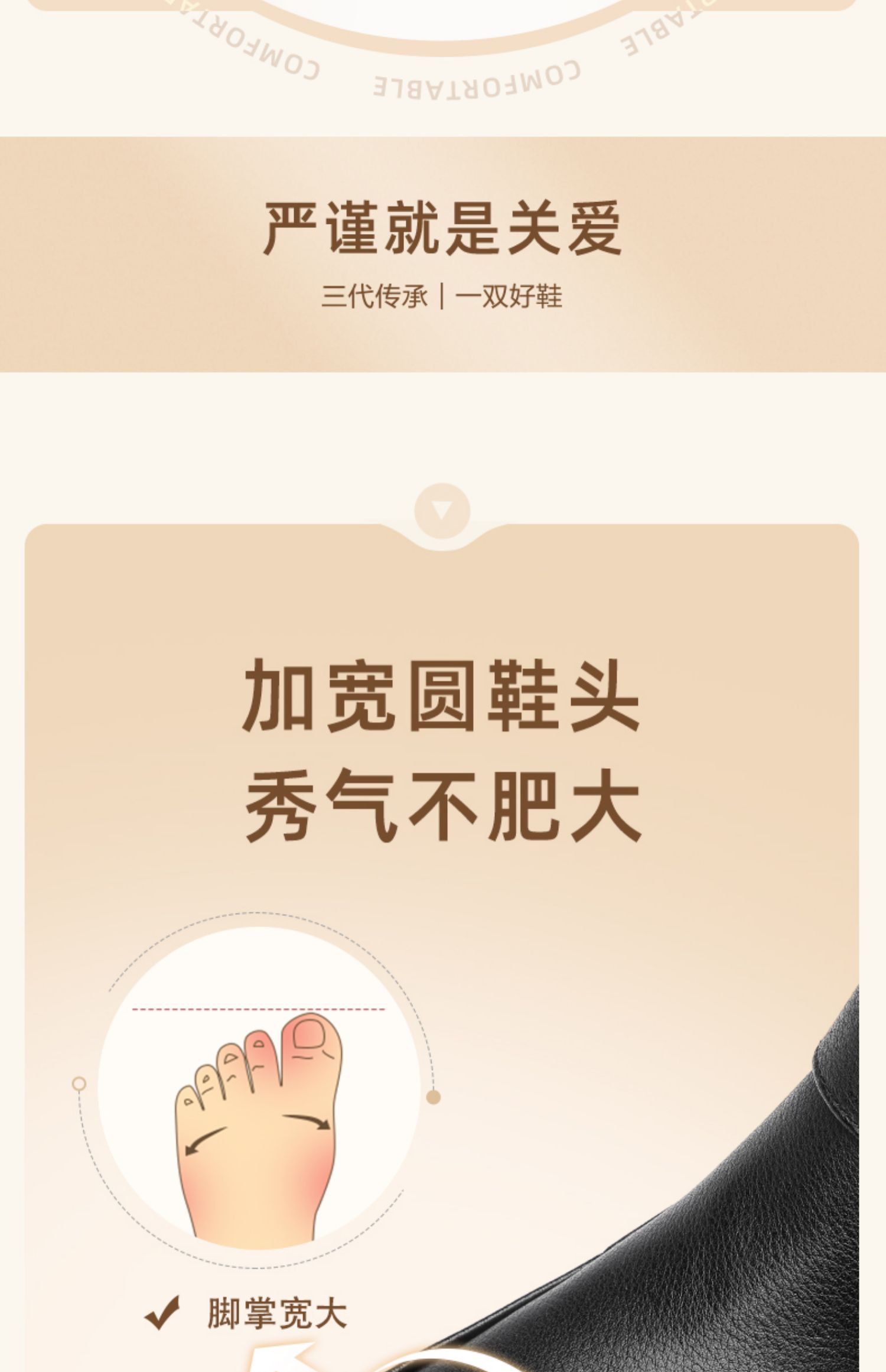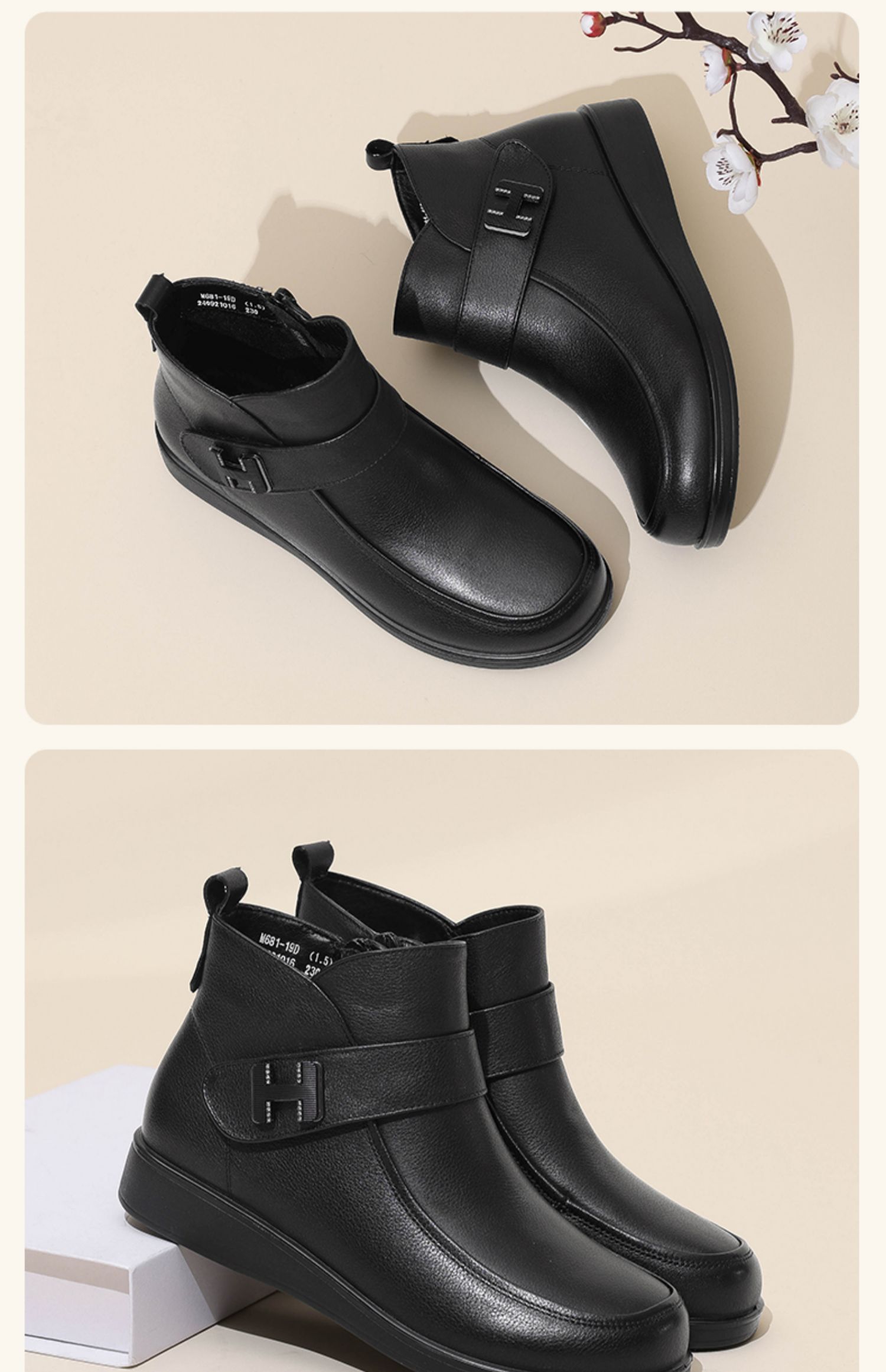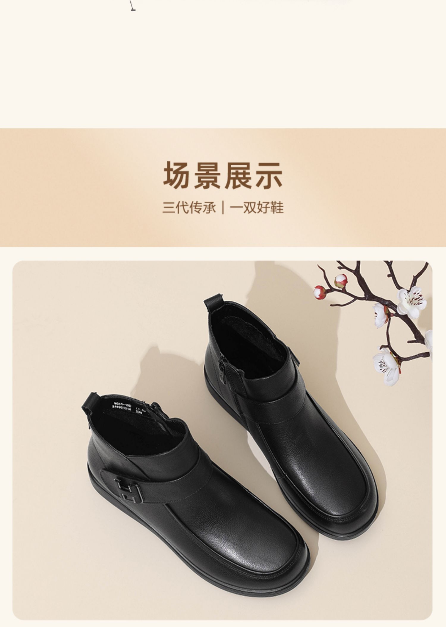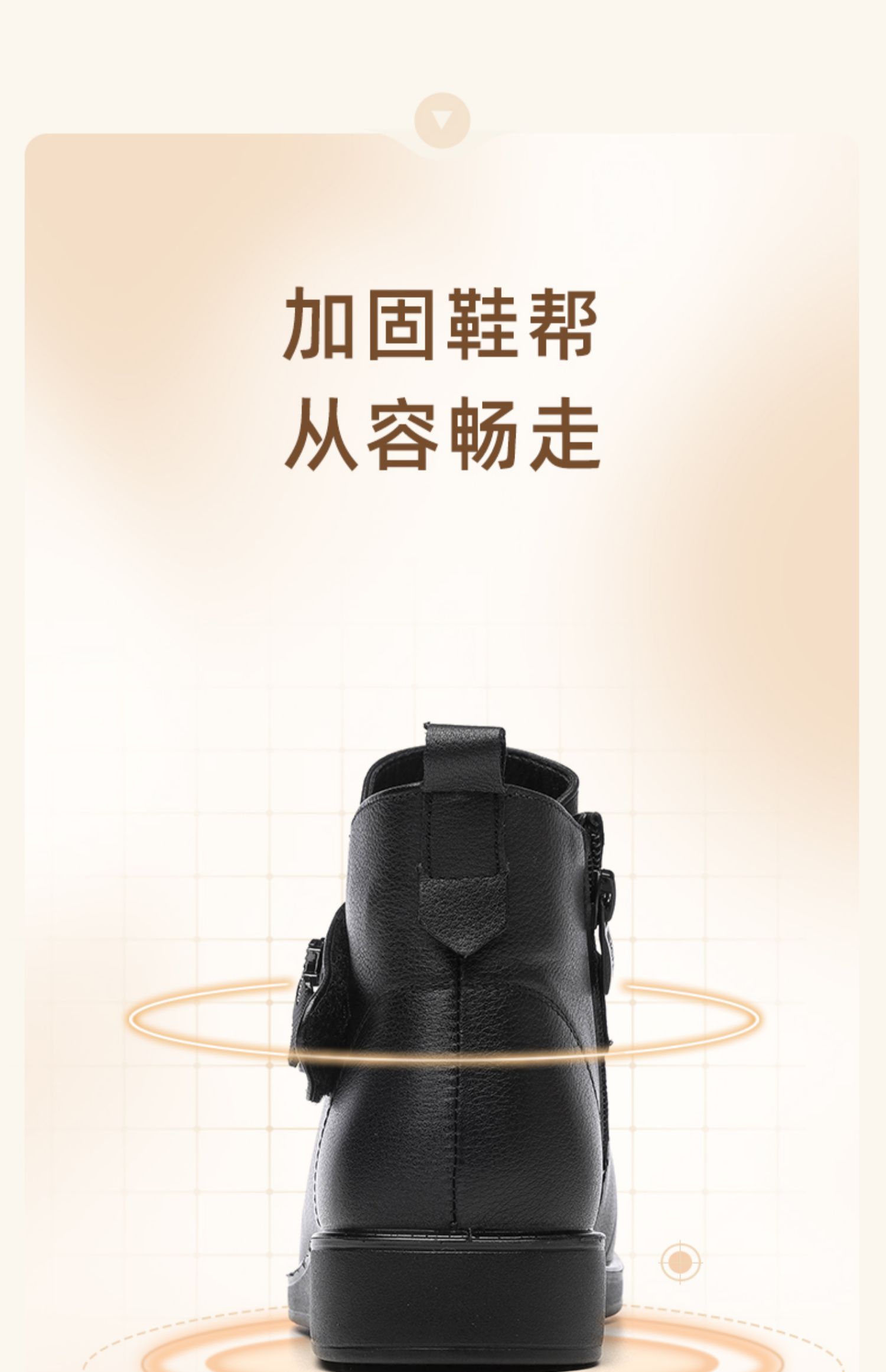 信诺软底真皮短靴女款中老年加绒妈妈鞋2024新款冬季棉鞋平底皮鞋M681-19D