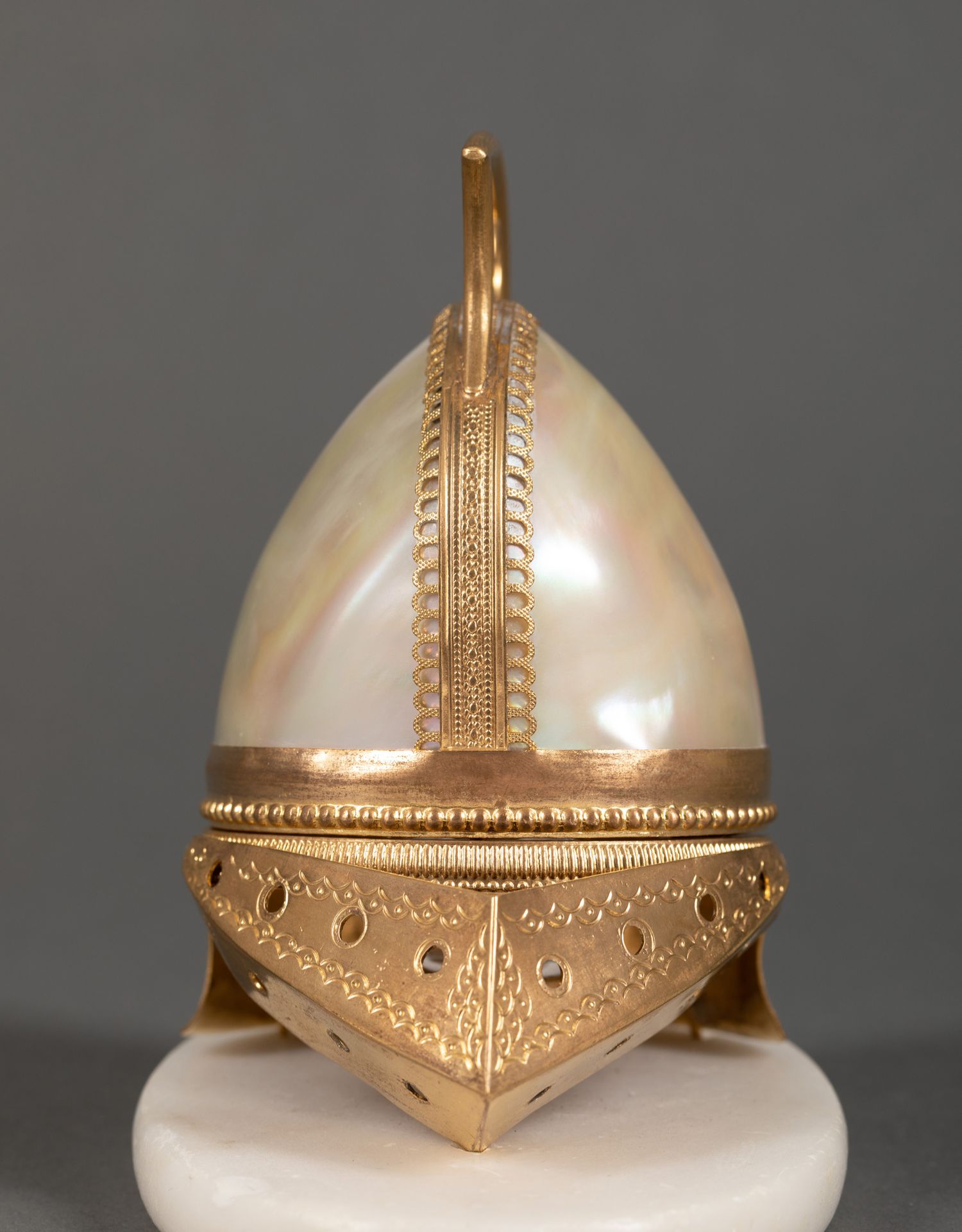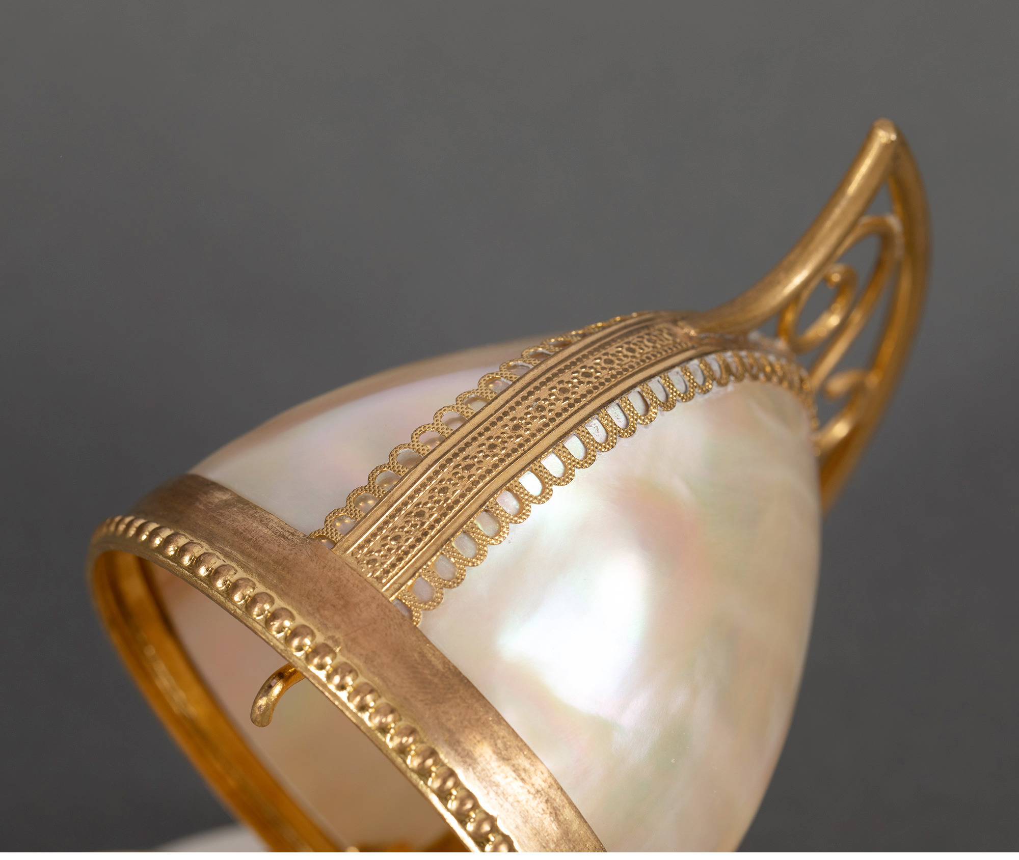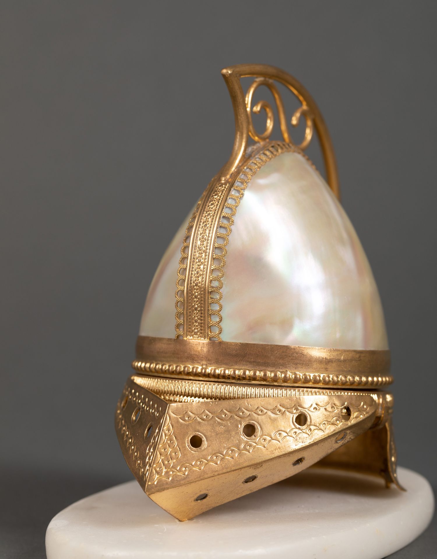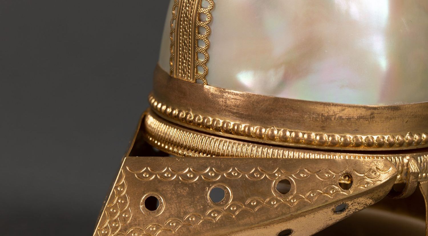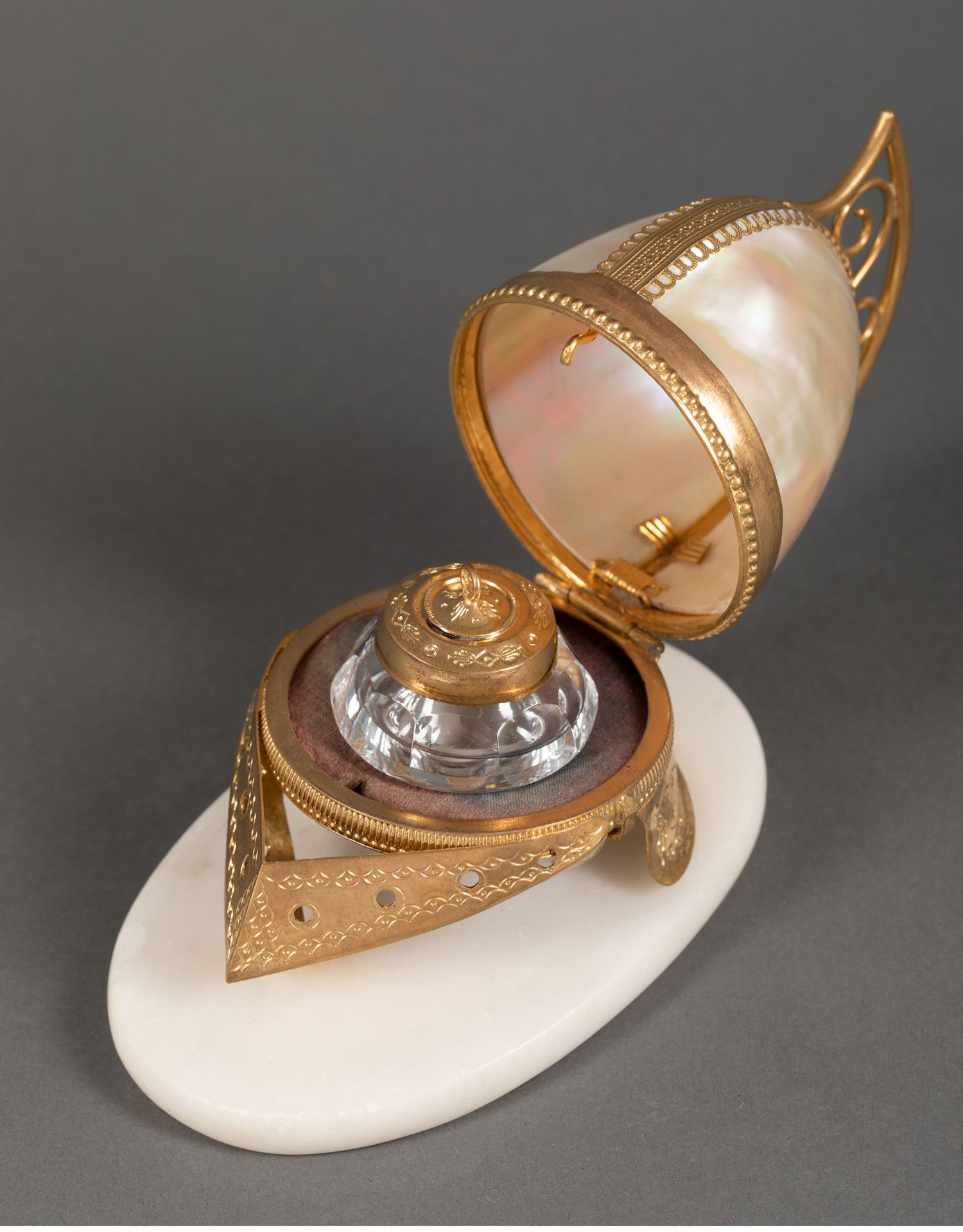 独角鹿西洋古董法国铜鎏金修饰母贝头盔造型书写套件