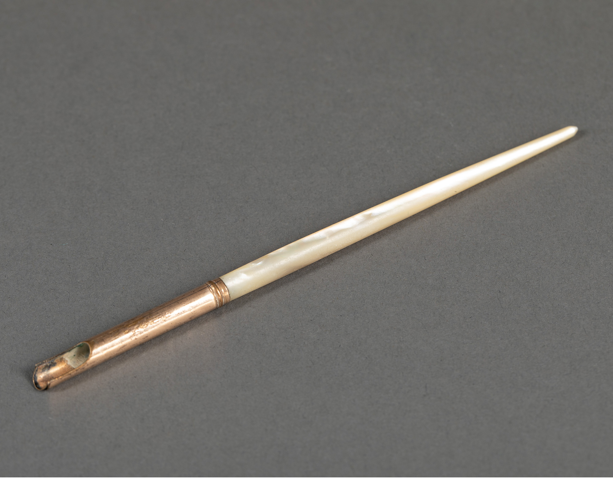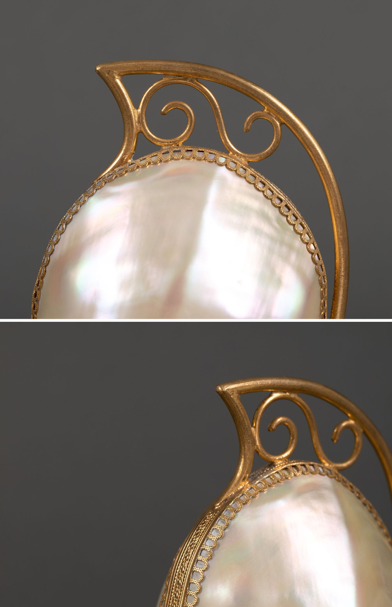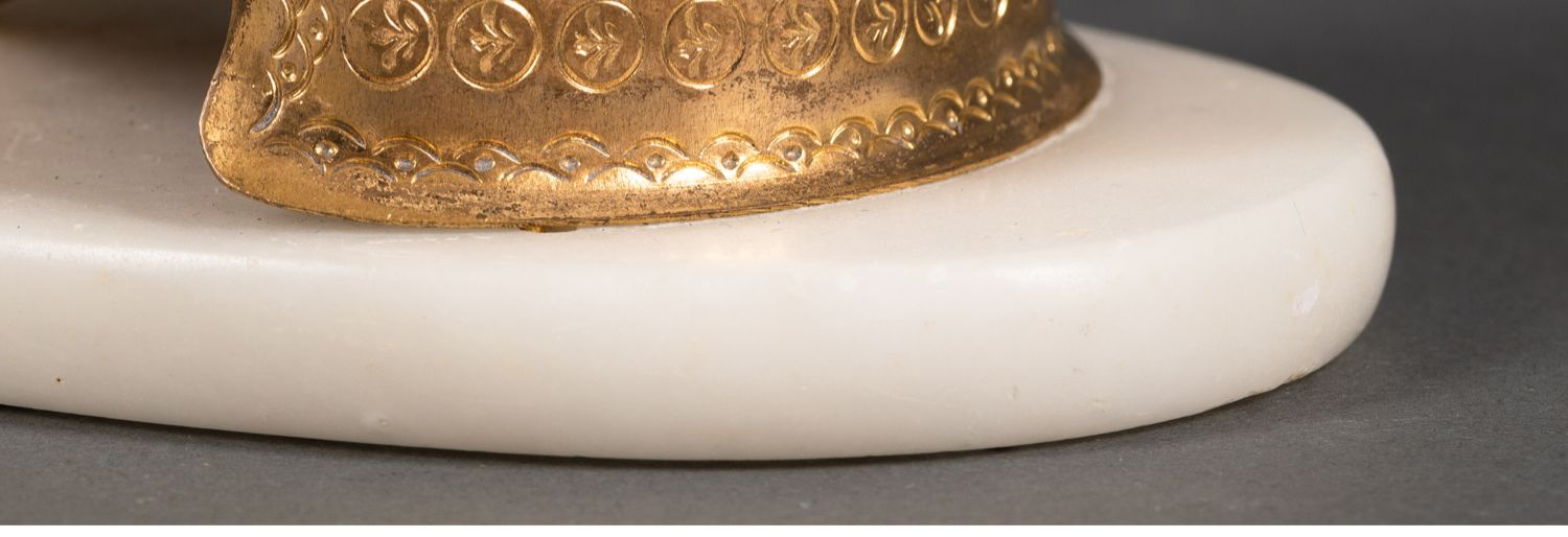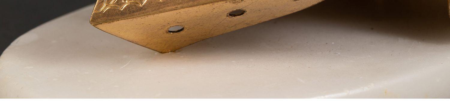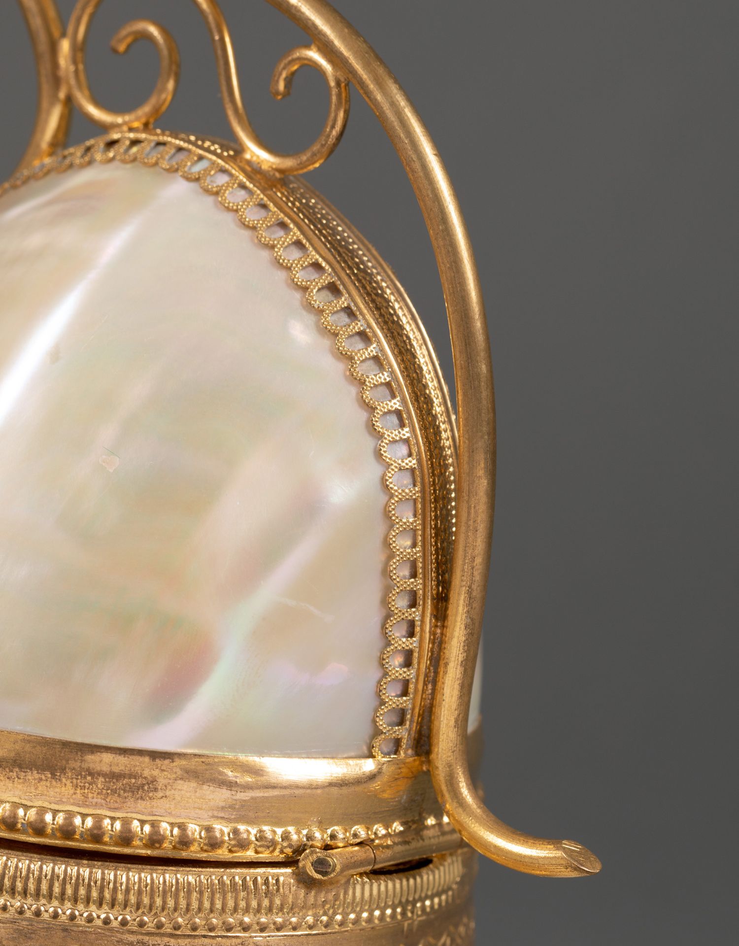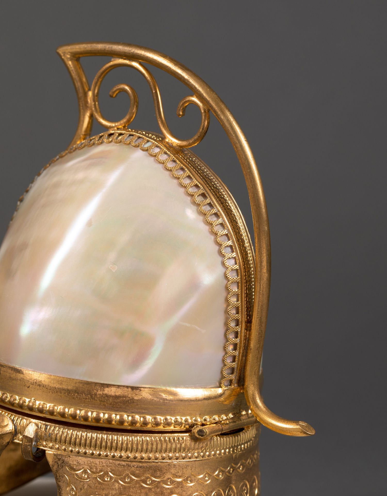 独角鹿西洋古董法国铜鎏金修饰母贝头盔造型书写套件