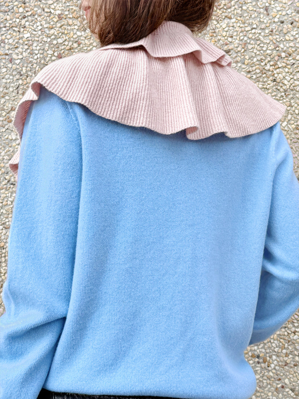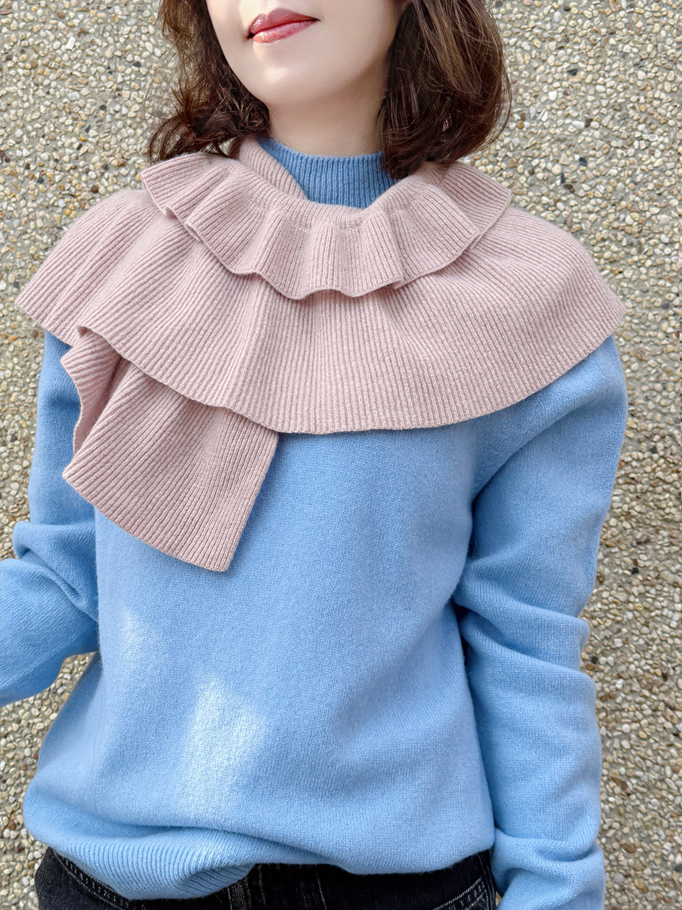 TYNVIE 奢华羊绒荷叶边领围巾-粉色