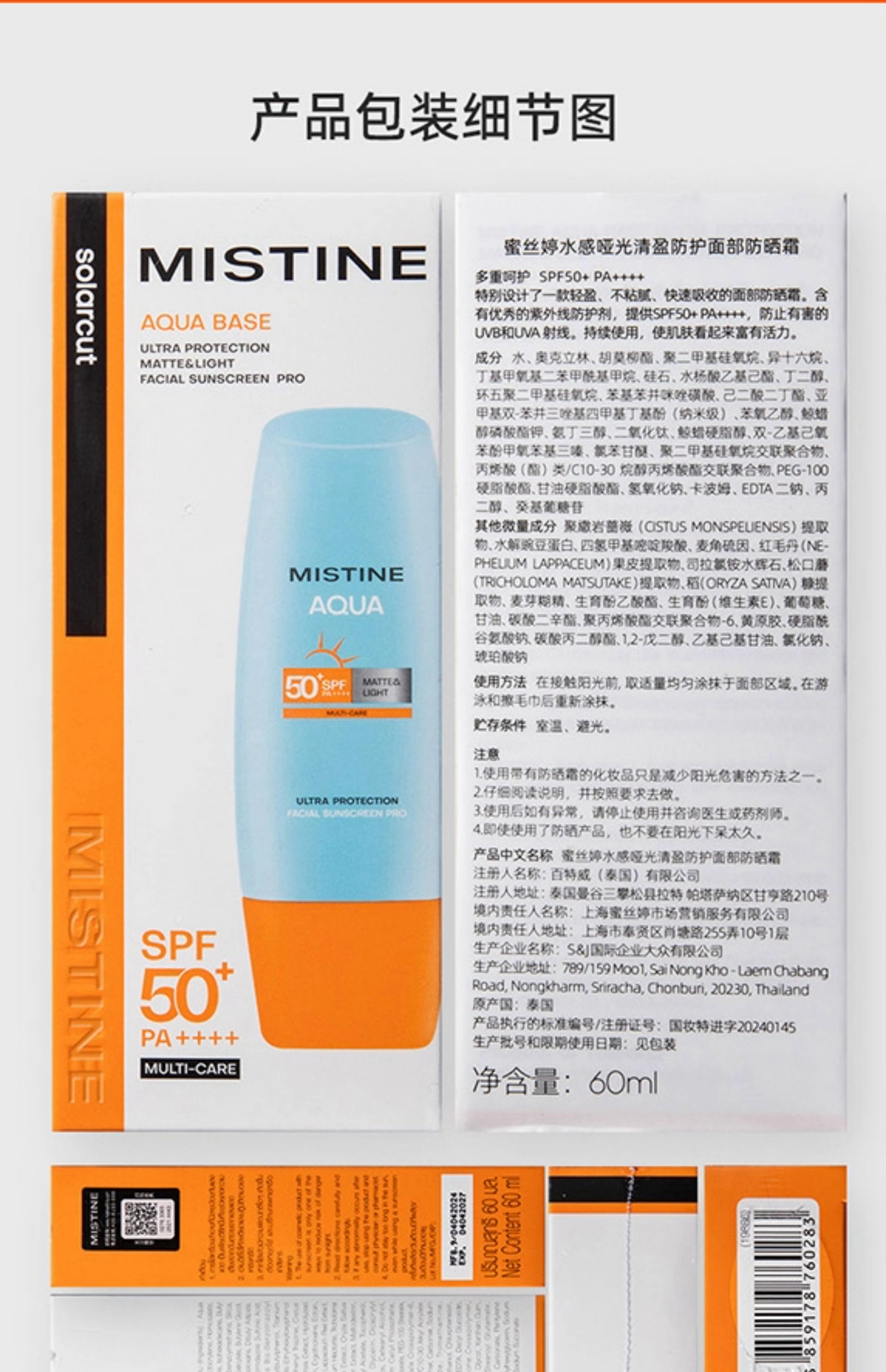 Mistine蜜丝婷通勤防晒霜礼盒套装防紫外线控油隔离hd
