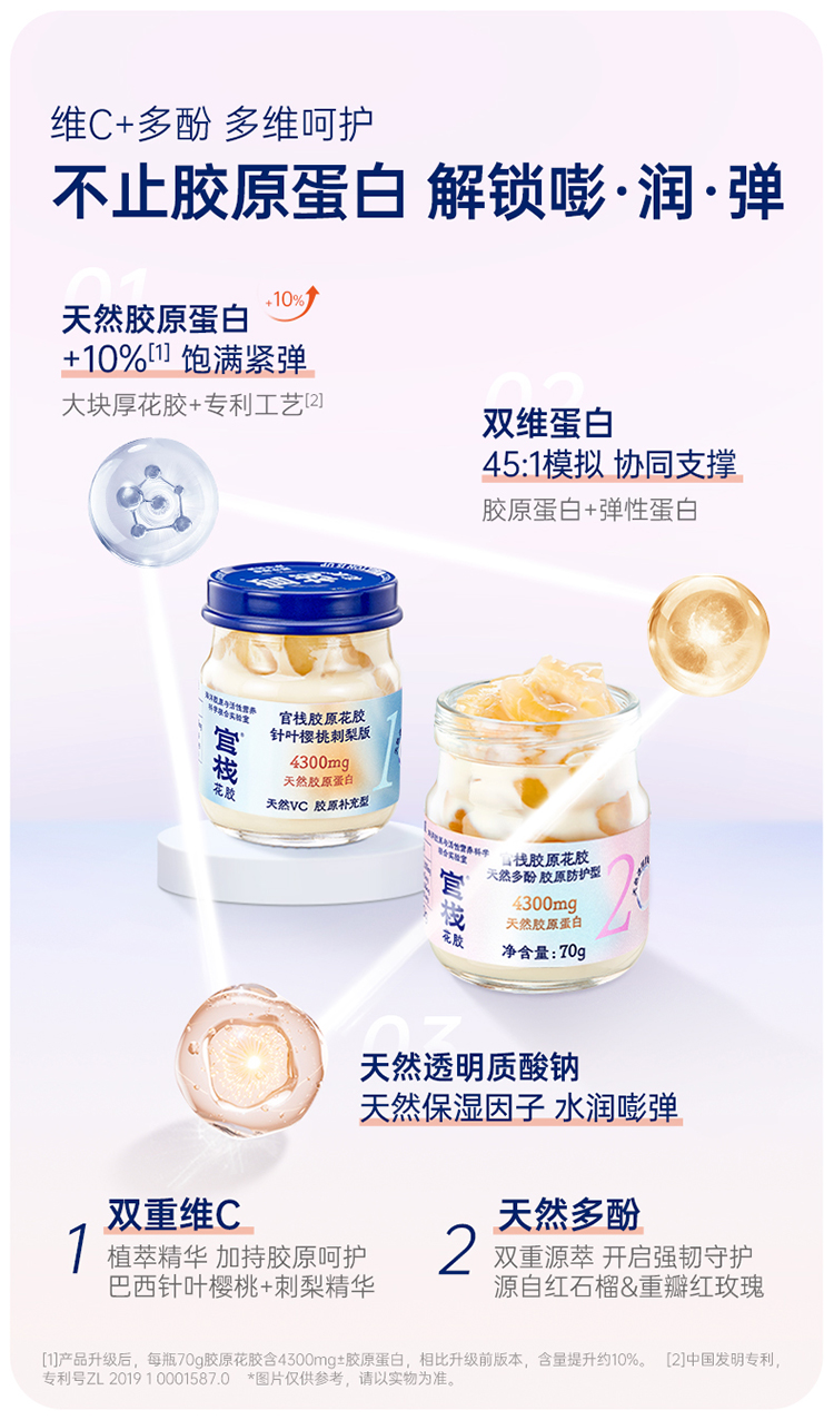 官栈营养胶原花胶70g*12(针叶刺梨樱桃*6+樱桃奇异果*6)