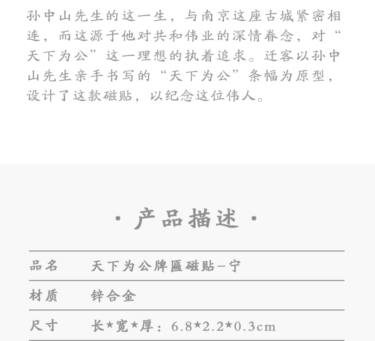 南京天下为公牌匾磁贴冰箱贴-宁