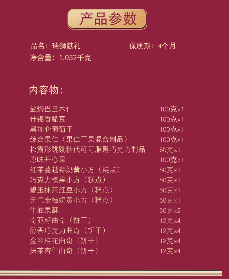 锦华瑞狮献礼糕点礼盒1052g【LY】【包邮直发】
