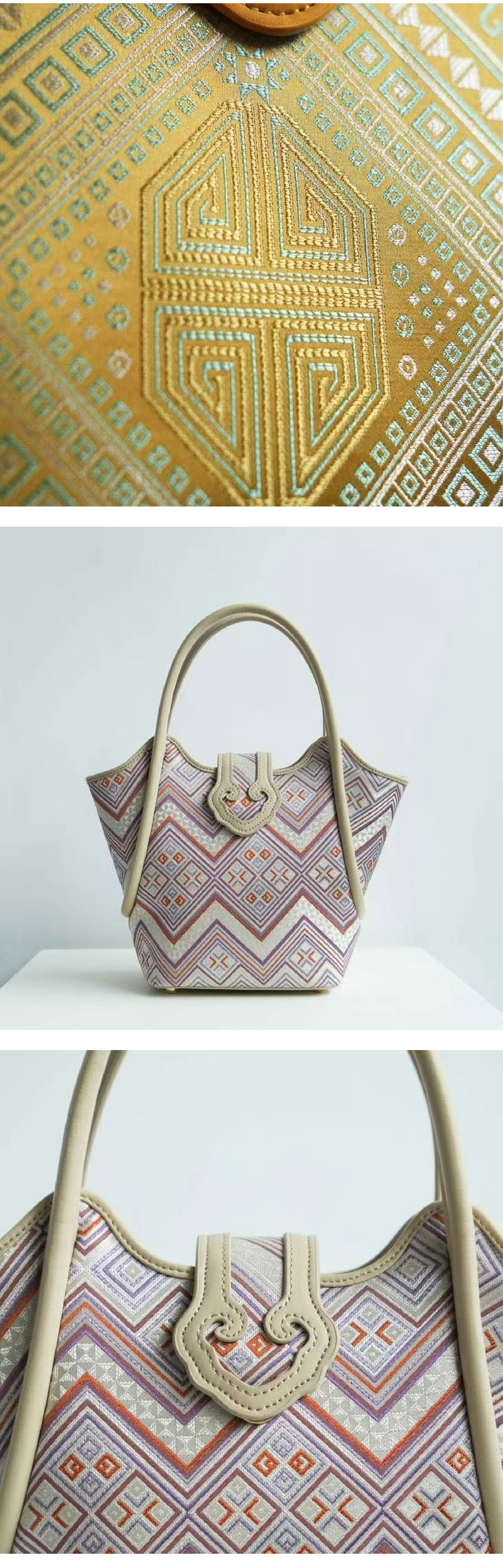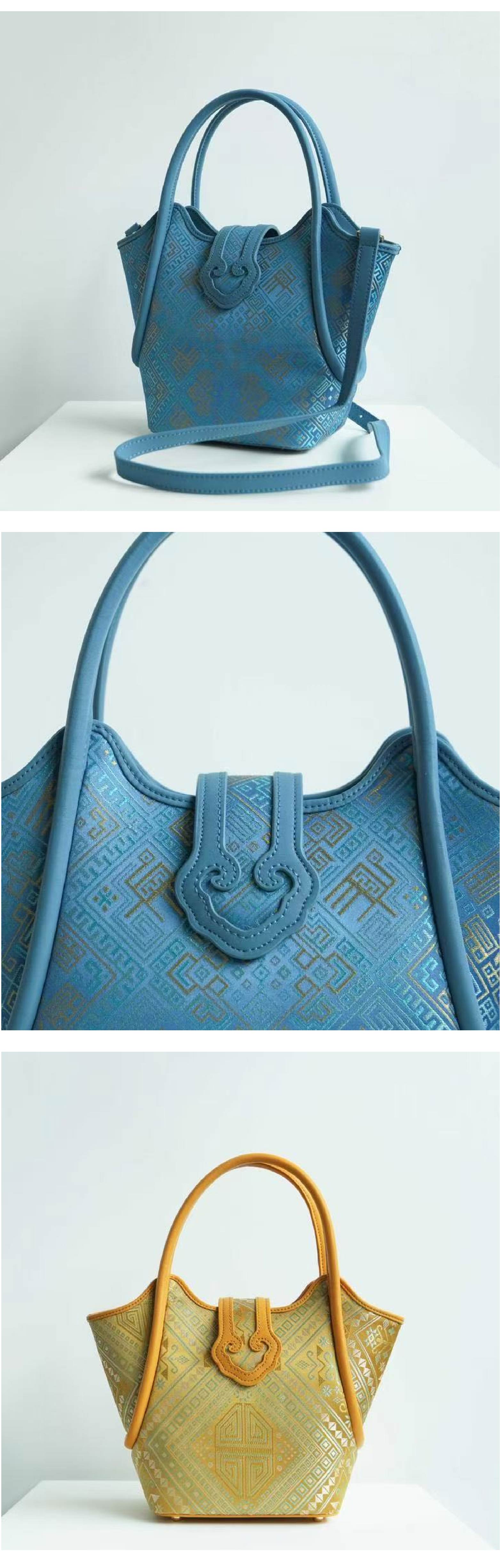 壮锦-酒红色万寿纹菜篮子手提/斜挎包
