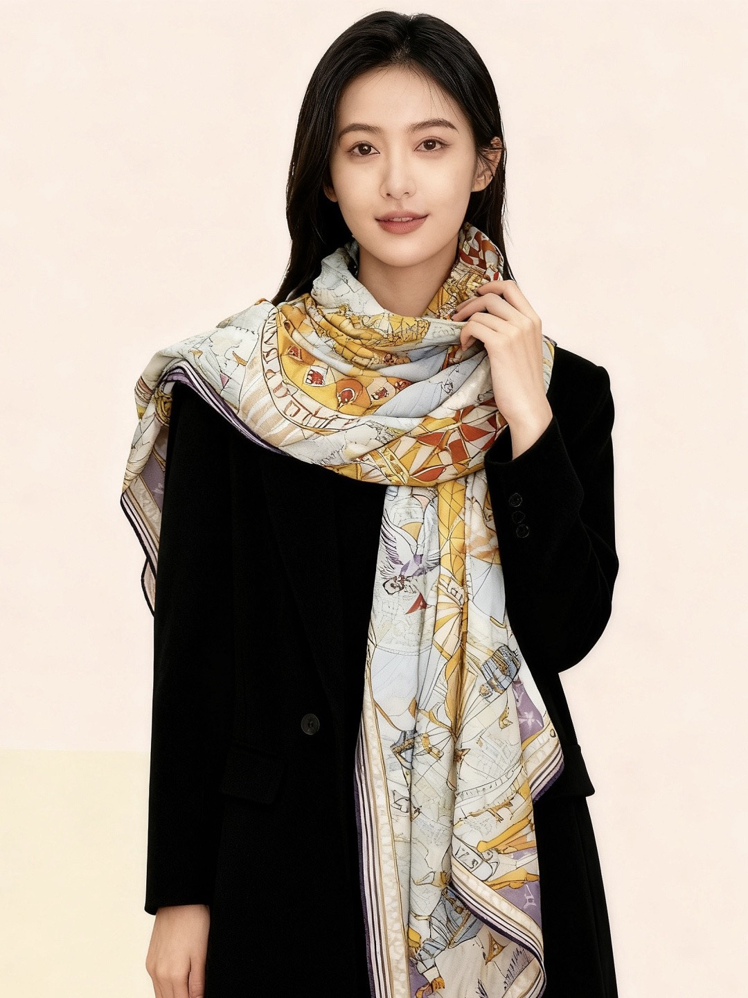 本款LVxTMMonogram Multicolor披肩出自路易威登与知名日本艺术家村上隆的合作系列,为轻柔丝绒混纺浸染素净色调,再以缤纷