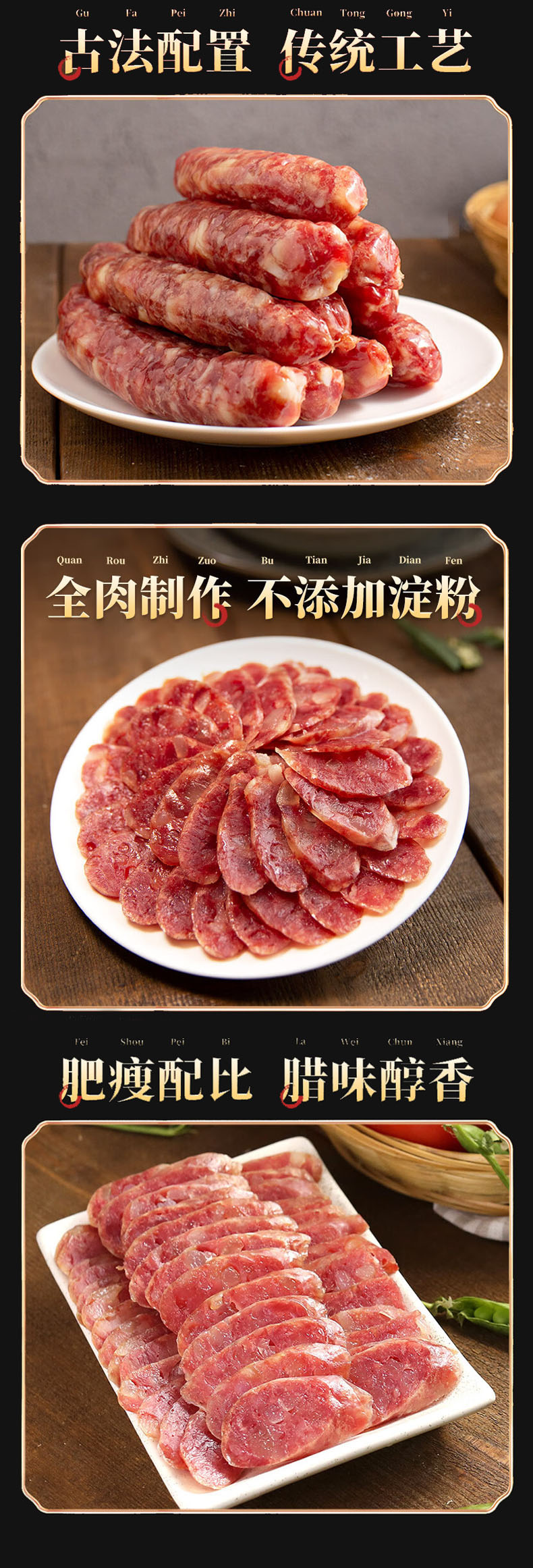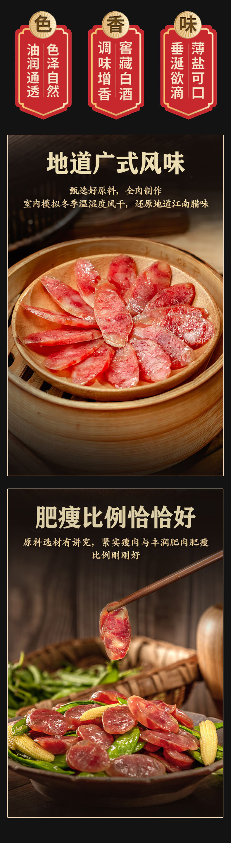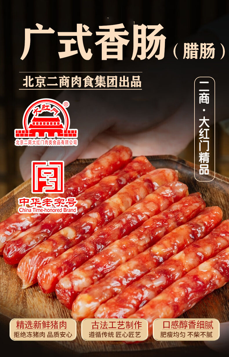 大红门广式香肠,6袋组合,老字号,地道广式腊味,纯肉肠,精选新鲜猪肉,古法工艺制作,肥瘦比例合适,老字号全产业链护航,甜咸交织、肉香爆棚,蒸炒焖煮样样绝,佐餐下饭,宴请宾客,都合适M
