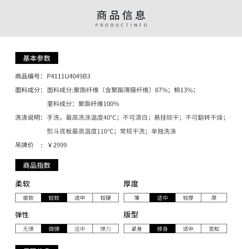 成熟、稳重、高贵典雅、大方得体 融合东方文化的含蓄和法国的浪漫 将创意的艺术性与消费需求相结合 为自信女性塑造高品质场合服装