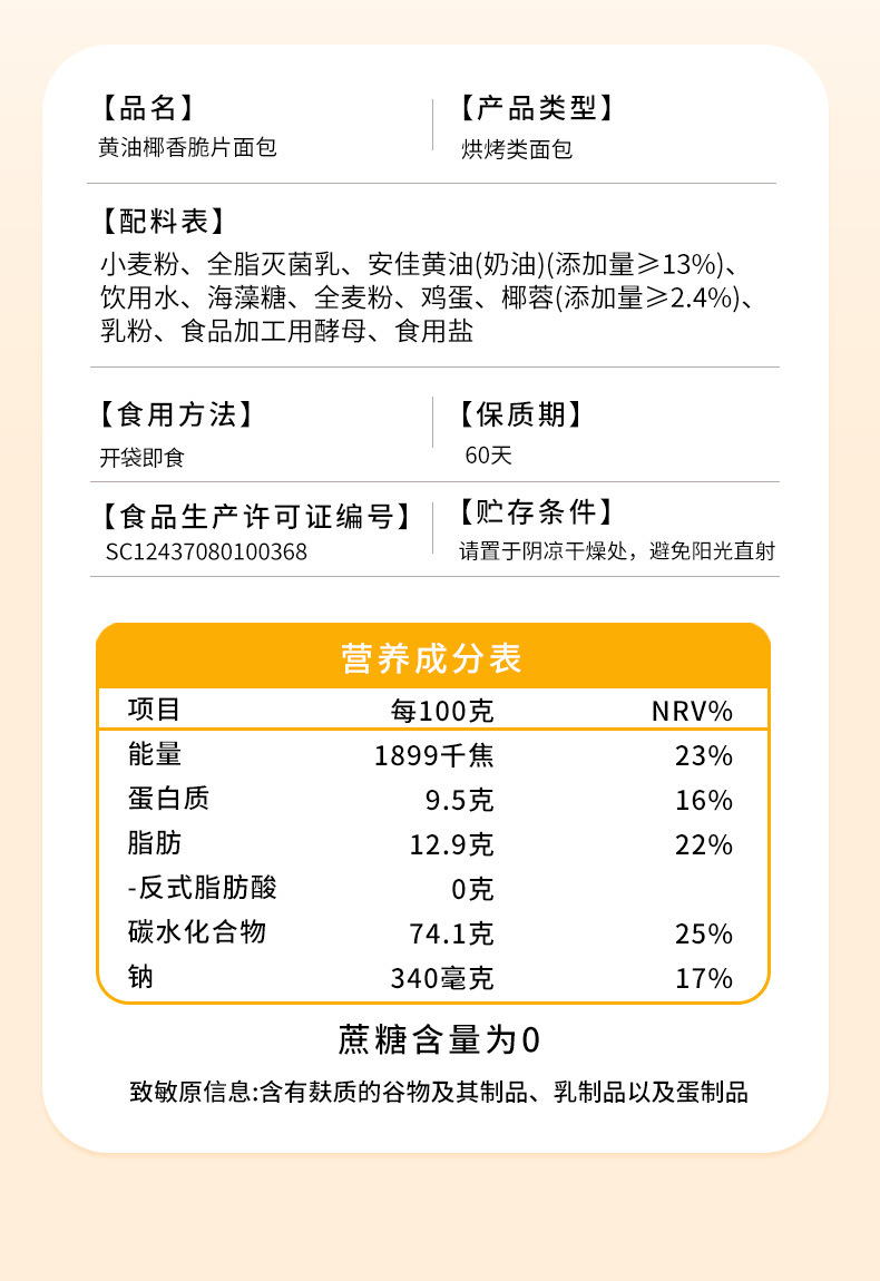 【超好吃❗️黄油椰香脆片面包】甄选安佳黄油,无加蔗糖,0反式脂肪酸,吃得放心!奶香味休闲即食下午茶代餐饱腹
