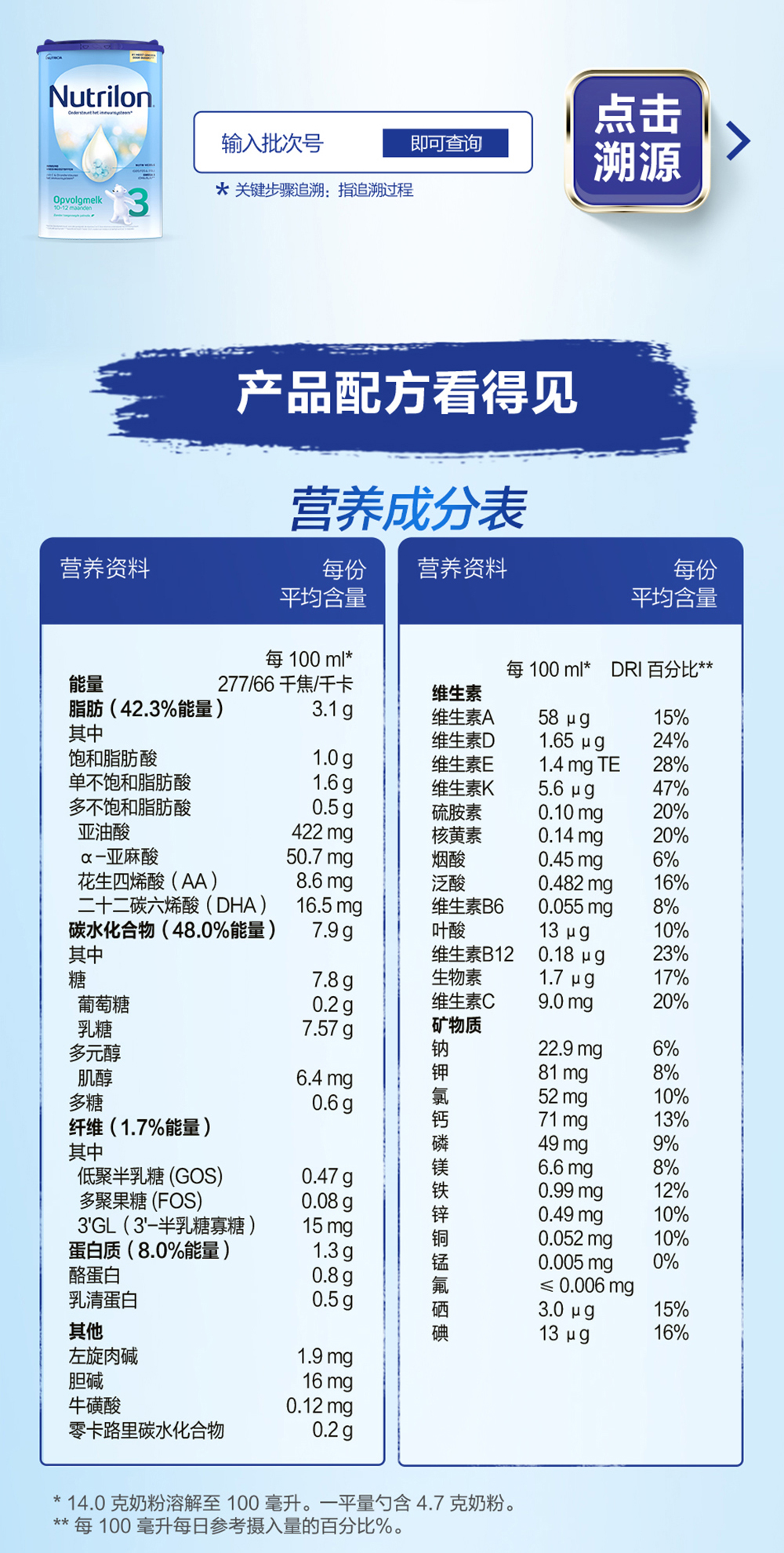 2罐装【保税】荷兰牛栏Nutrilon 婴幼儿奶粉3段 800g
