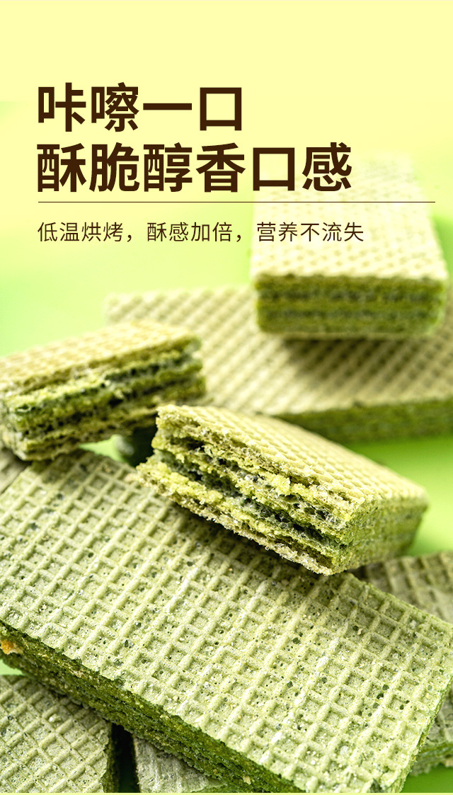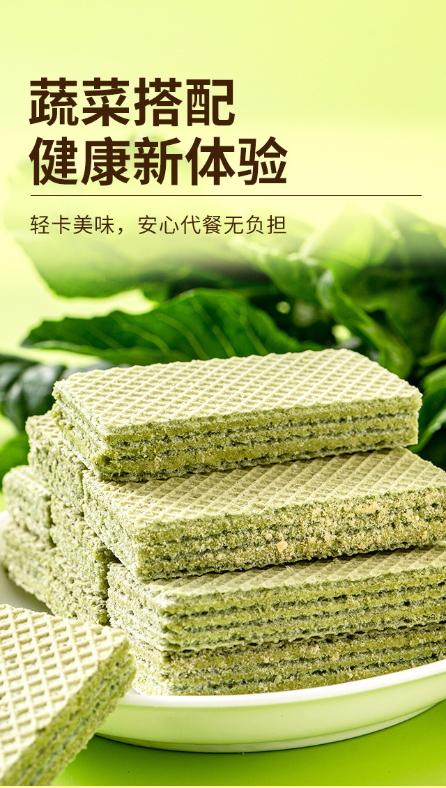 【酥脆轻负担!青汁威化饼干】咔嚓一口酥脆醇香口感,酥感加倍营养不流失,美味有营养,代餐无负担,早餐零食 威化饼干整箱下午茶点健康L