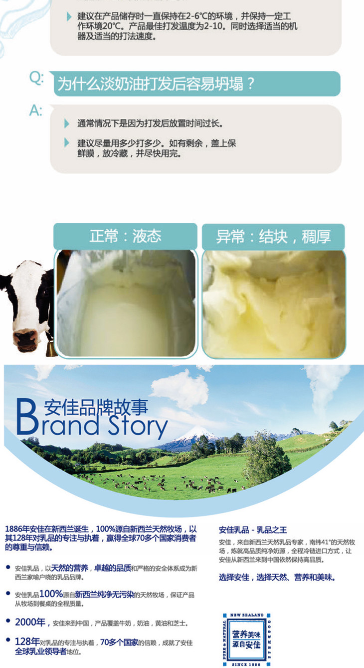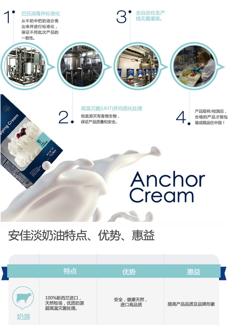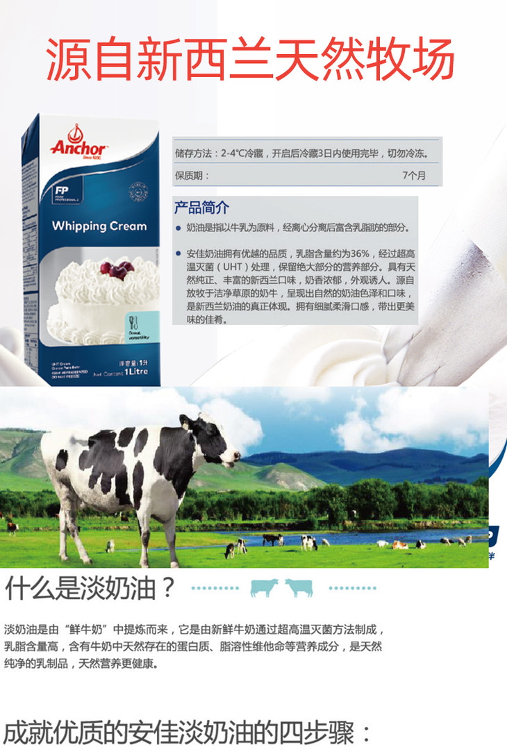安佳淡奶油1L*12盒整箱 (只售湖北,武汉包邮) 动物性鲜奶油 奶茶蛋糕蛋挞