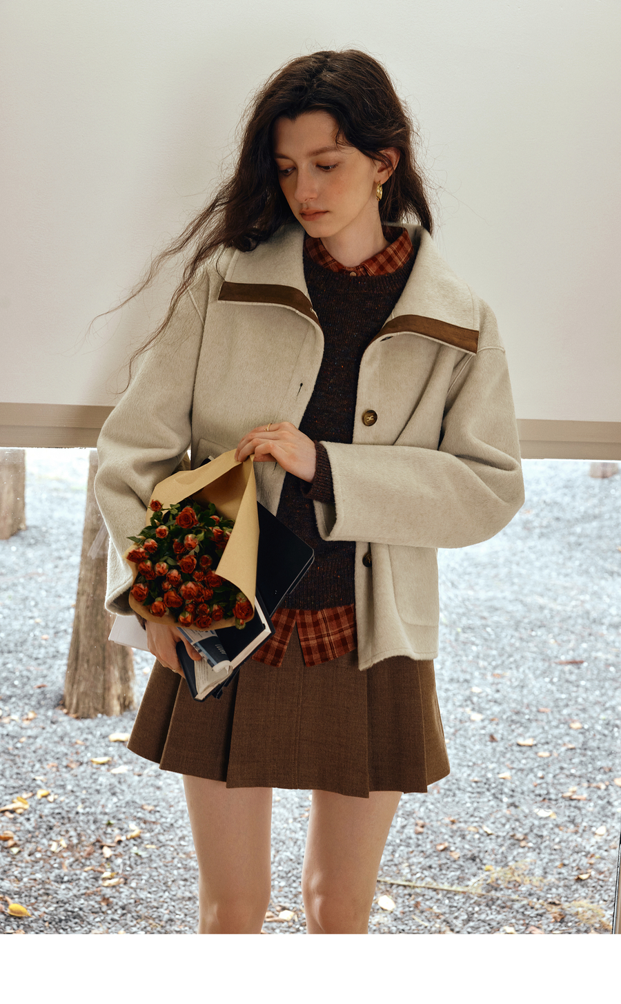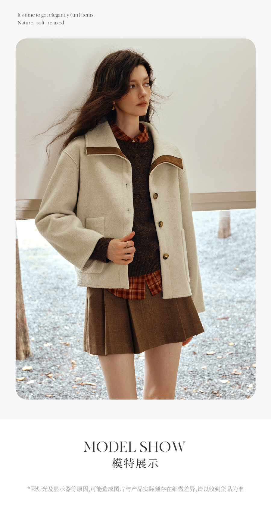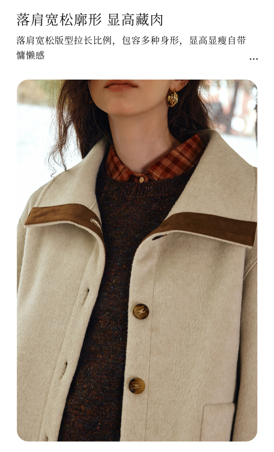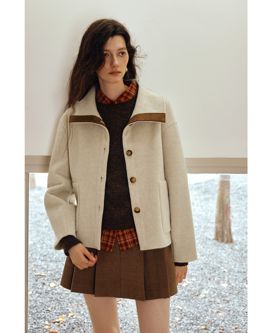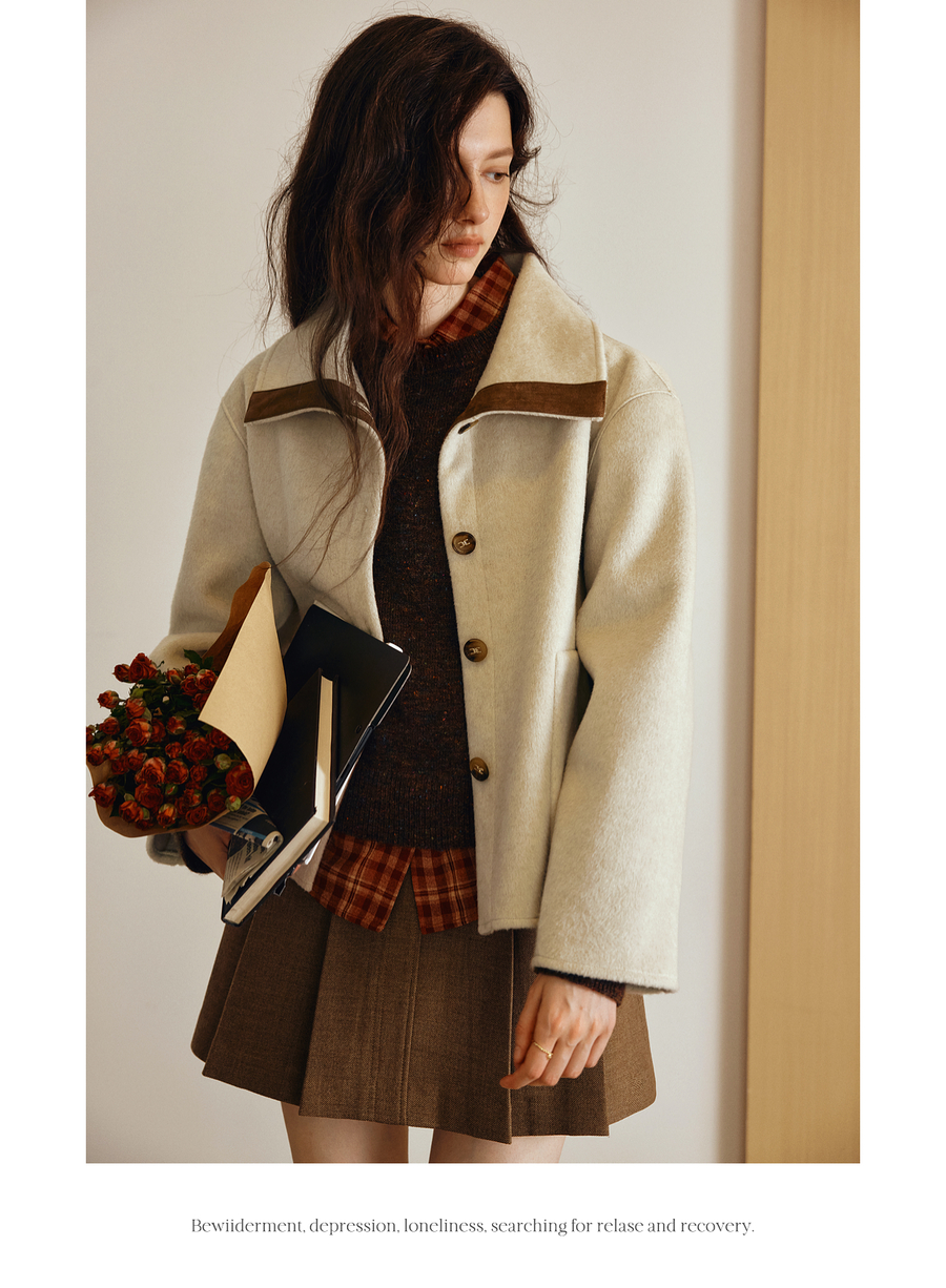 OLrain欧芮儿2025新款女秋季奢暖撞色翻领设计感大衣双面呢外套
