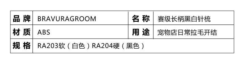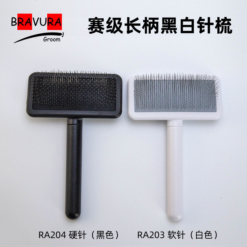 宠物黑白针梳 长柄 RA203软针(白) RA204硬针(黑)意大利BRAVURAGROOM