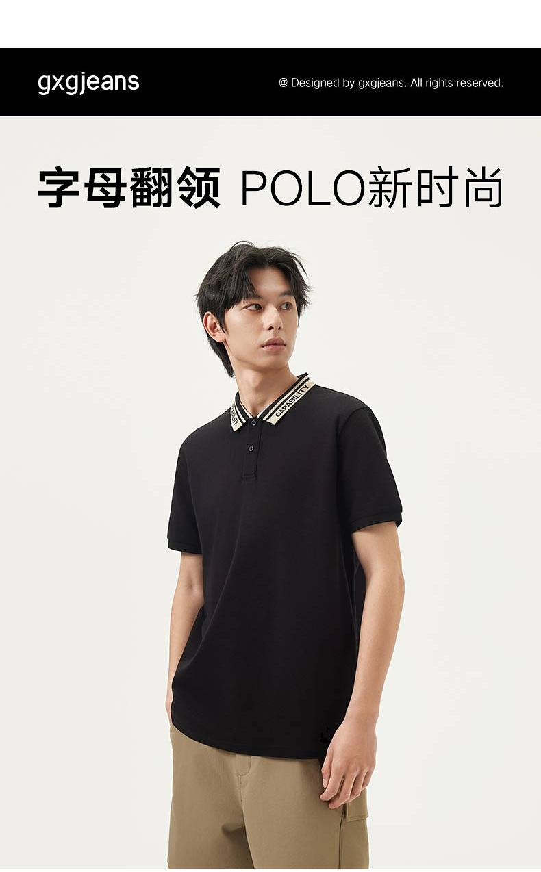 gxg.jeans男装 多色休闲字母提花翻领男式POLO衫男短袖 25夏热卖