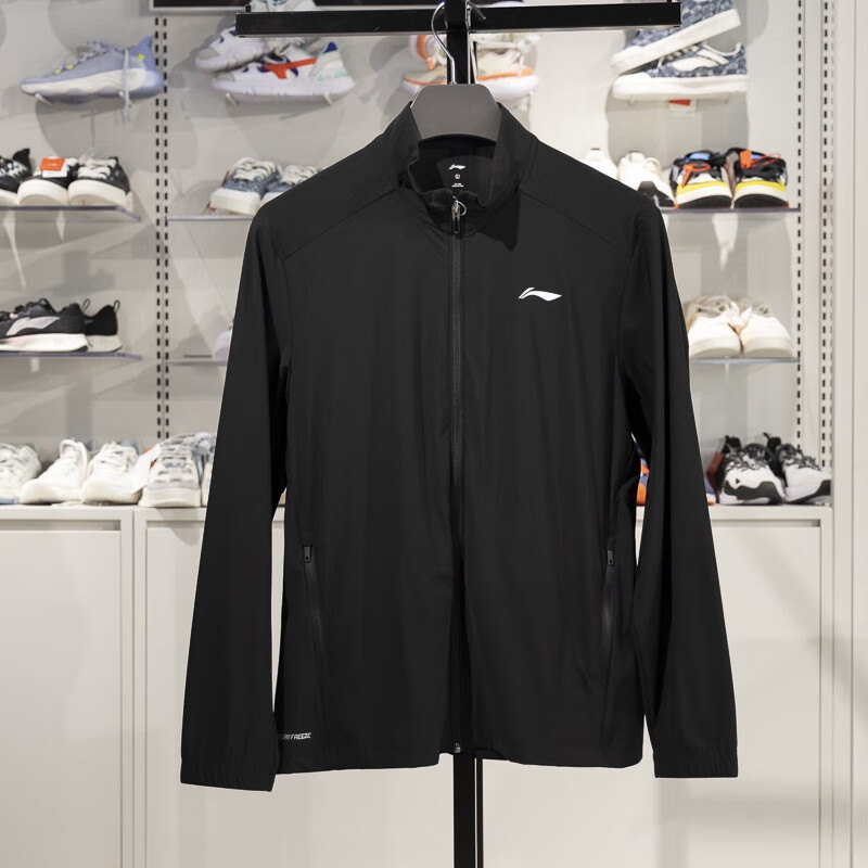 李宁运动外套男子健身系列轻薄透气针织立领风衣AFDV239 黑色AFDV239