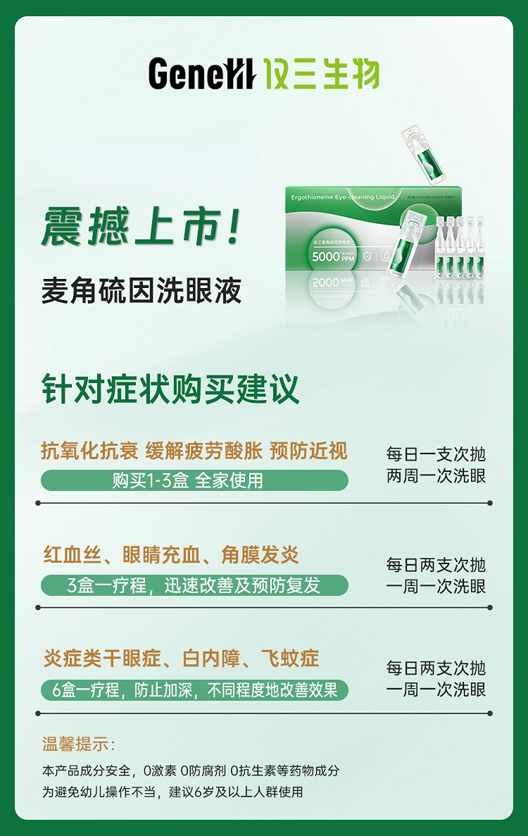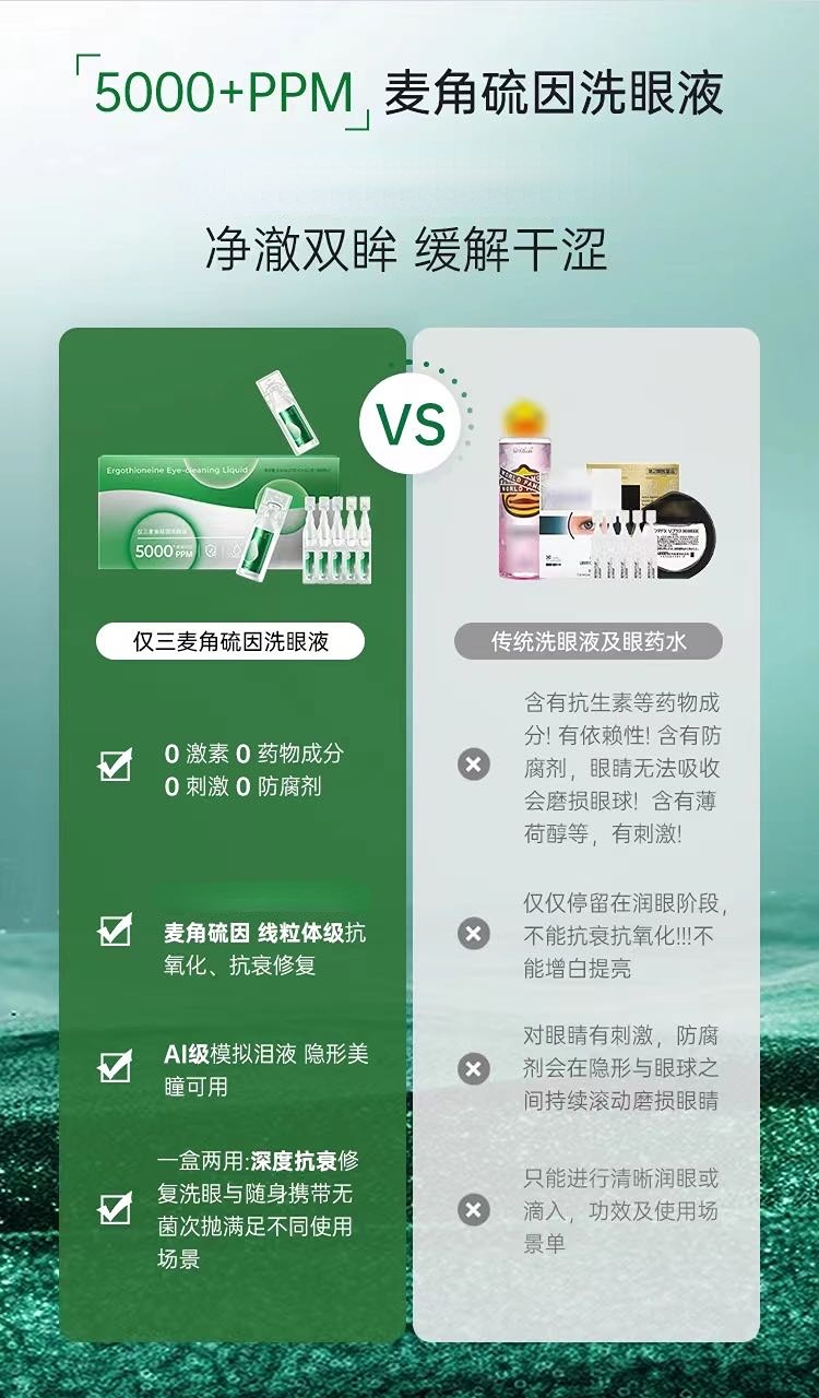 添加麦角硫因的洗眼液,并且足足5000+PPM浓度!!