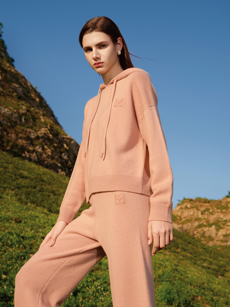 【运动针织羊绒套衫】羊绒世家秋冬新品100%山羊绒针织连帽运动套衫