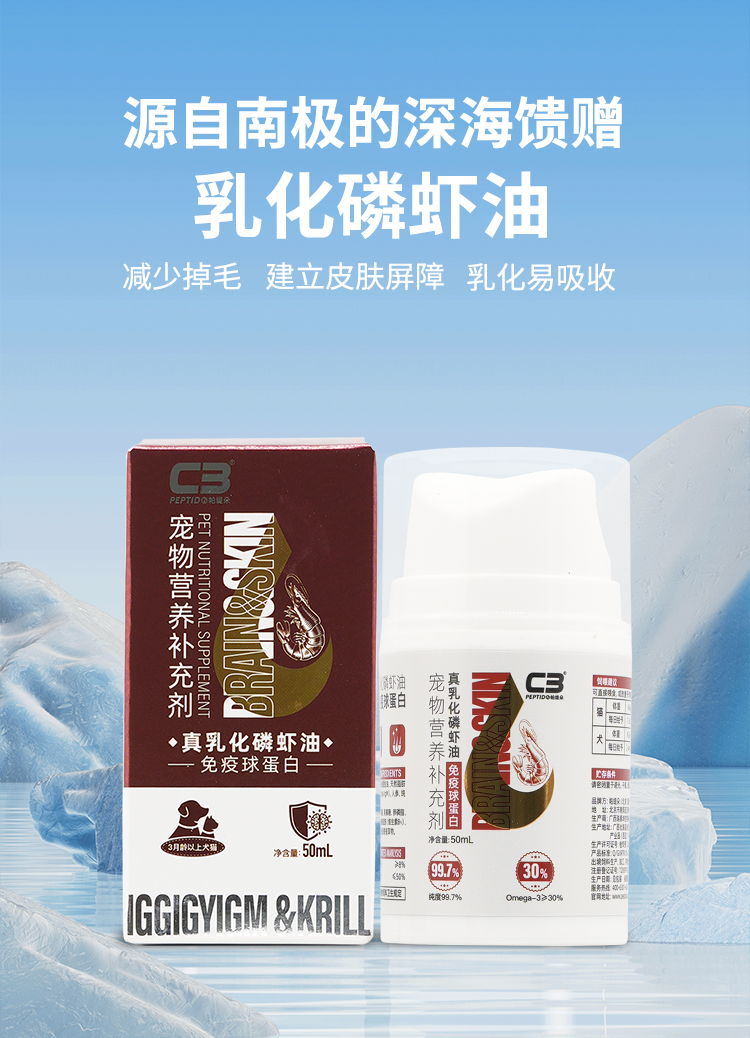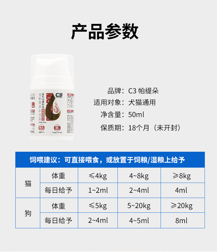 乳化鱼油猫咪毛发营养宠物南极磷虾油猫用按压式狗狗美毛护肤爆毛