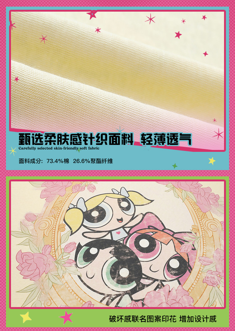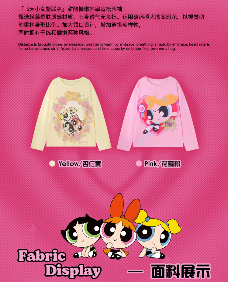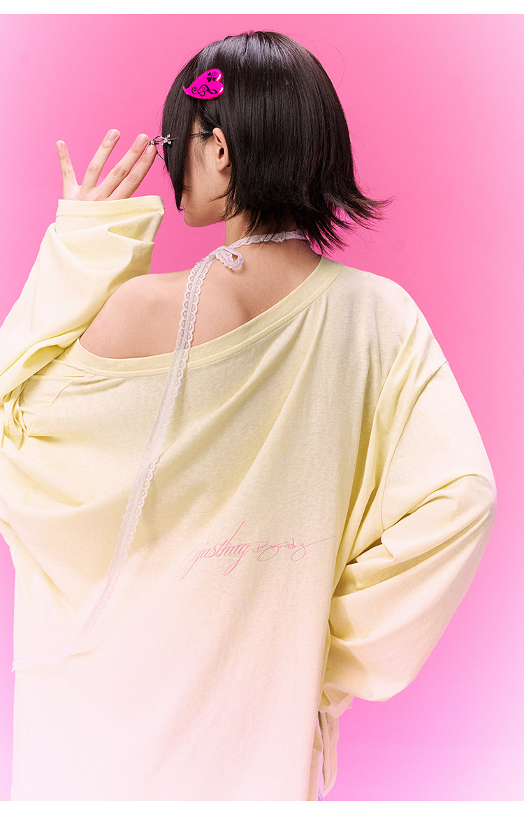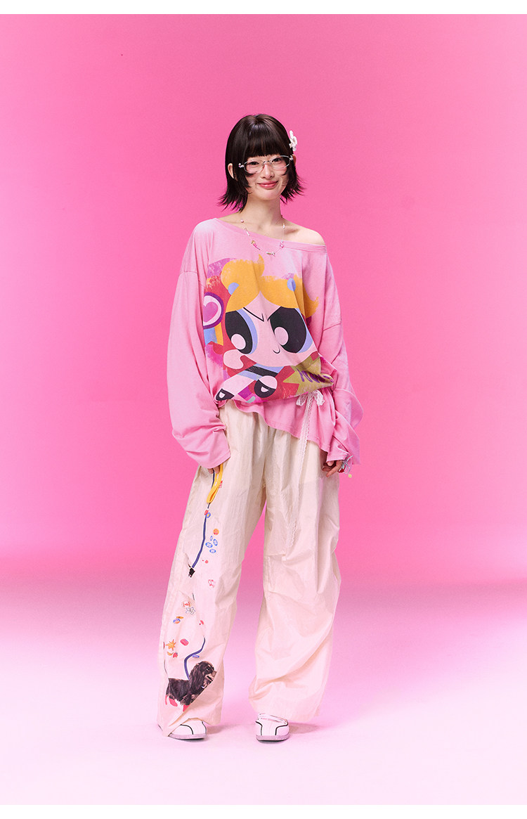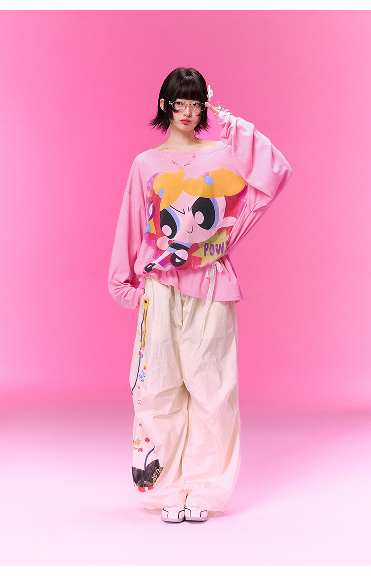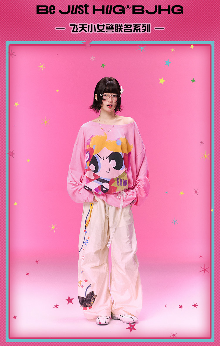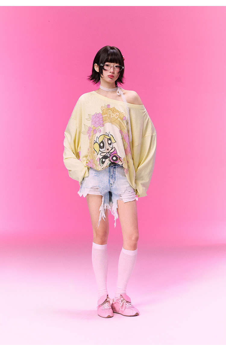 飞天小女警联名BJHG不计后果 长袖T恤罩衫女款夏季可外穿斜肩上衣