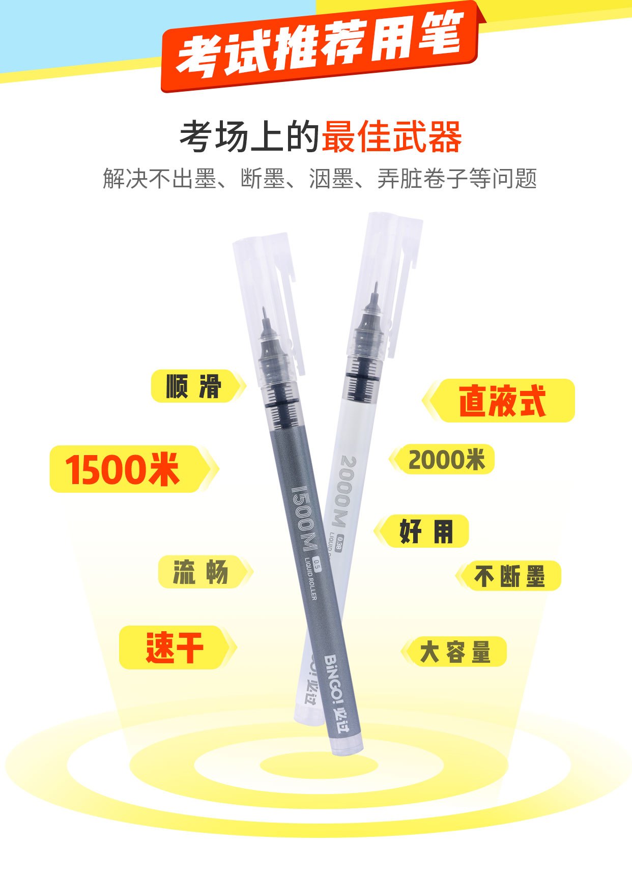 考试必过直液走珠笔0.38mm黑