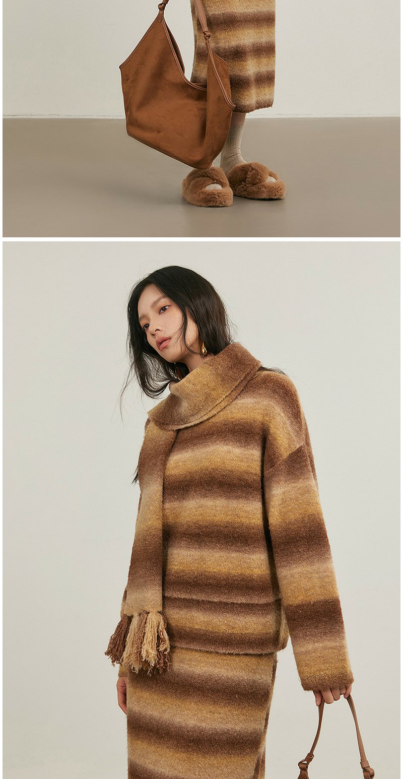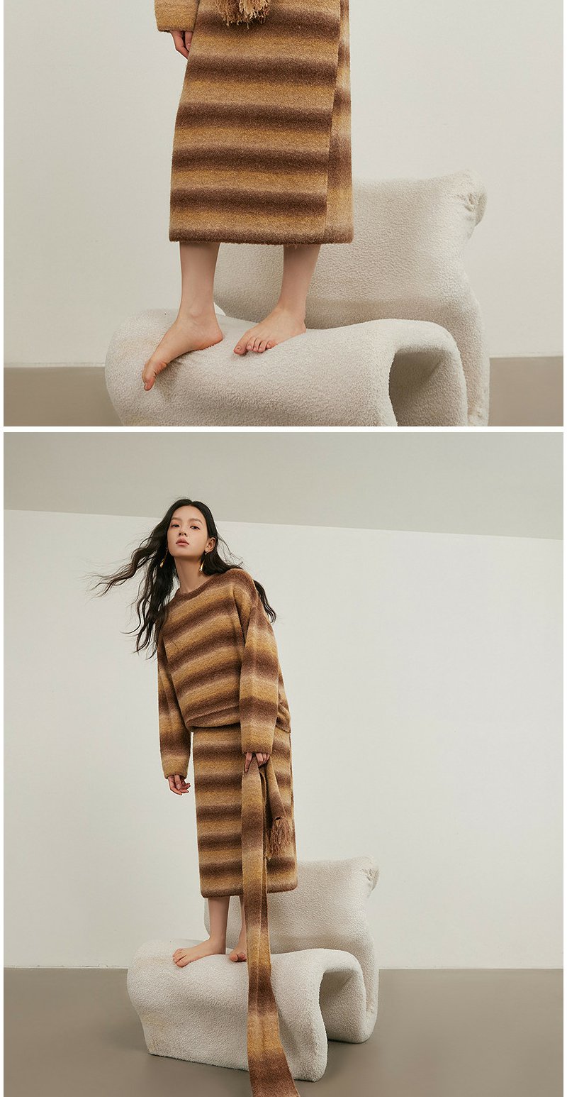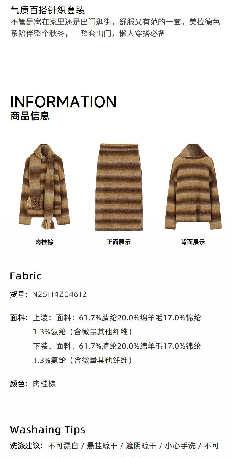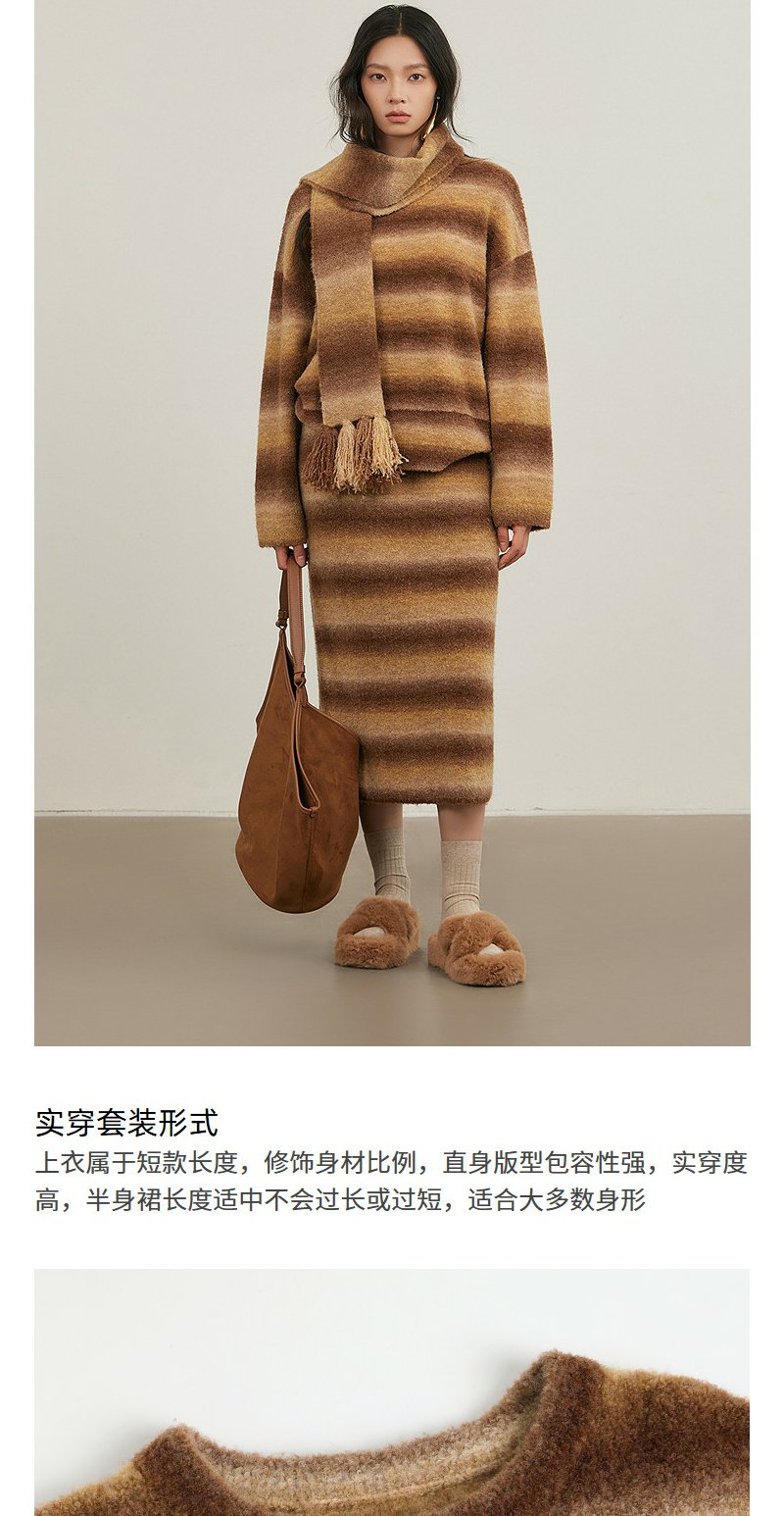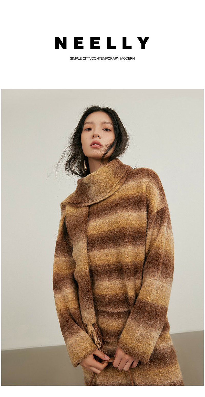 NEELLY纳俪商场同款冬季新款美拉德色系百搭针织套装女毛衣半身裙N25114Z04612