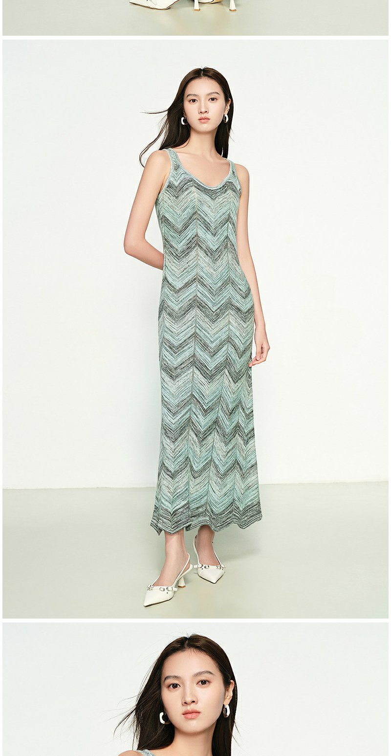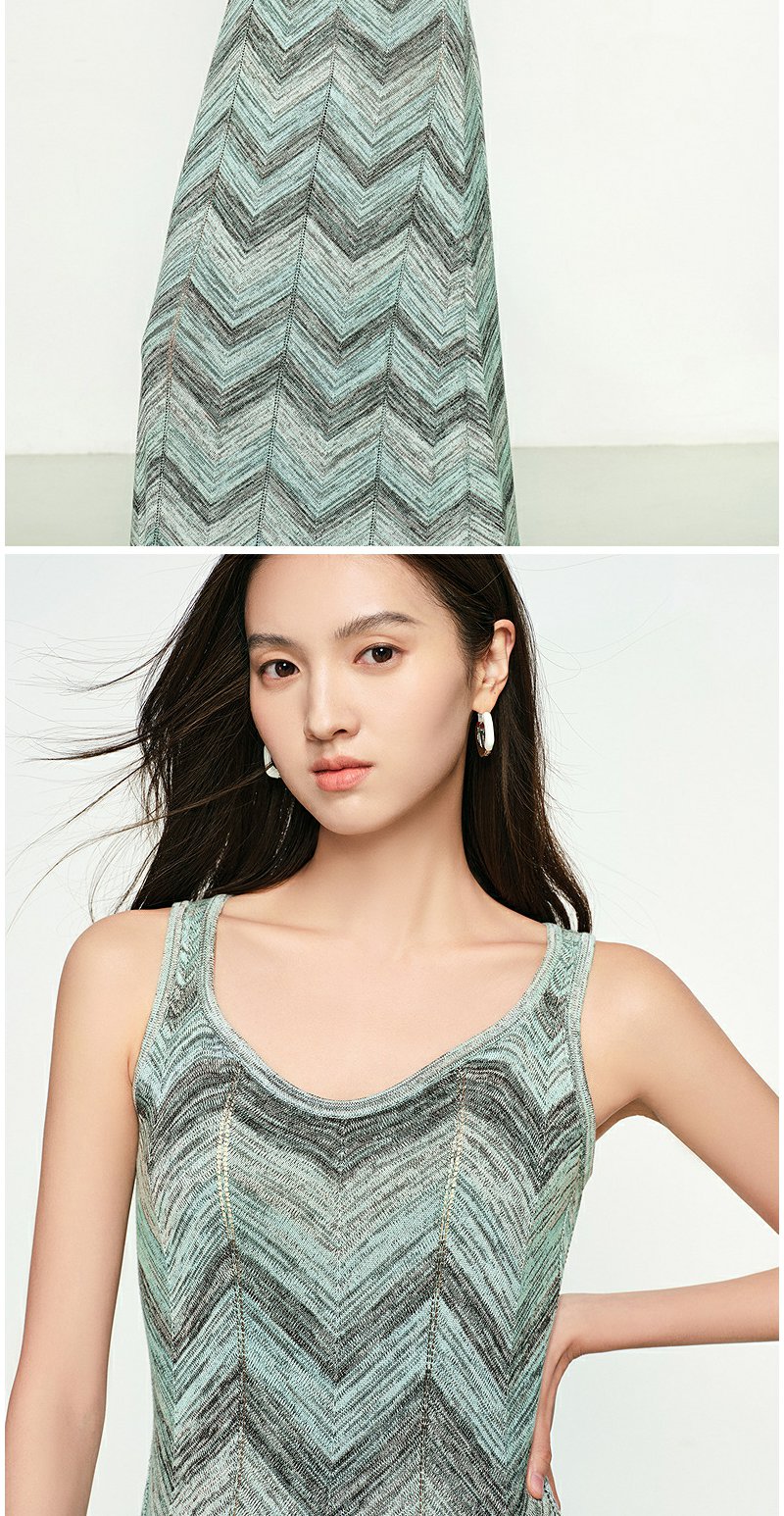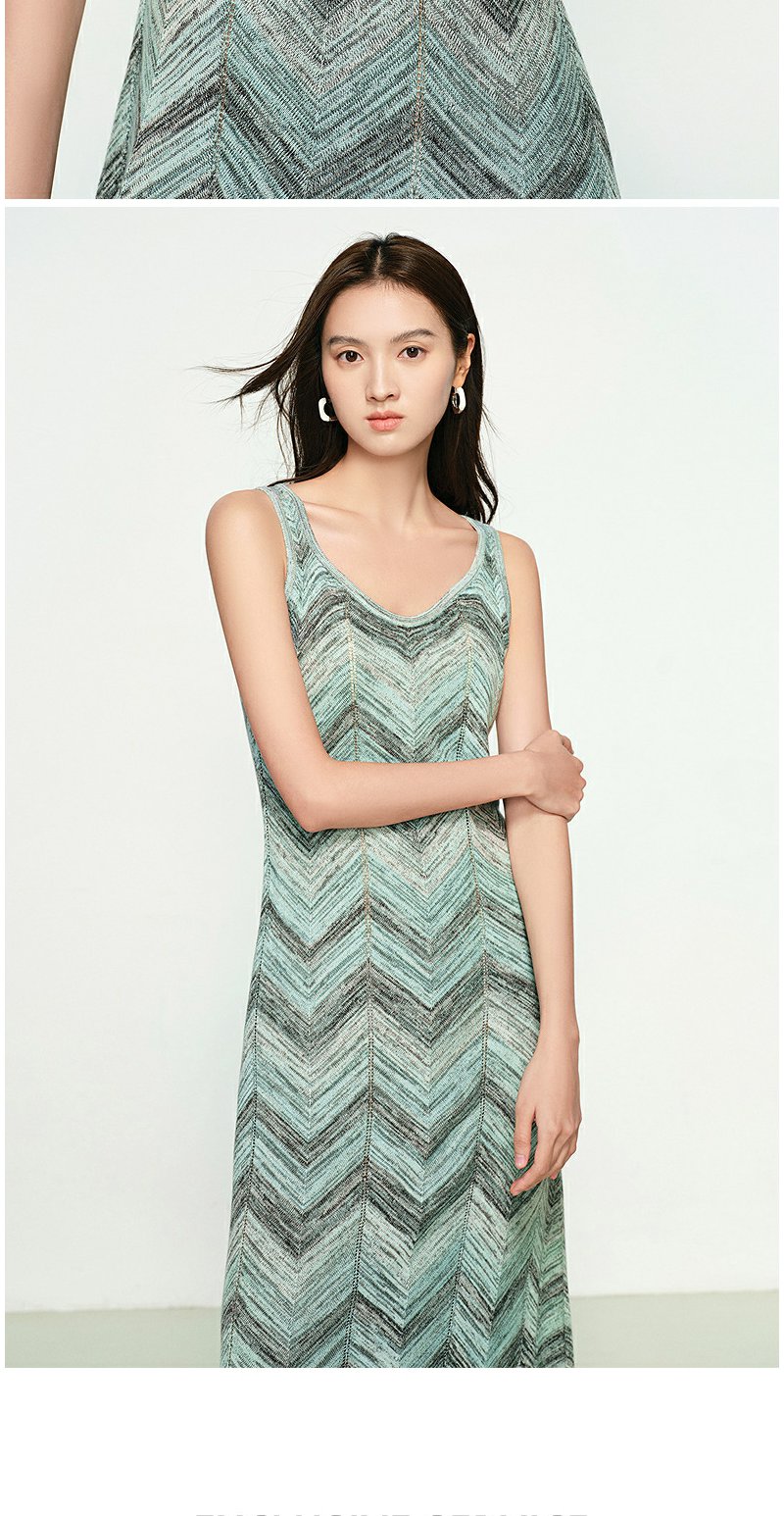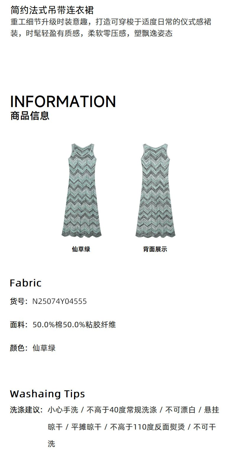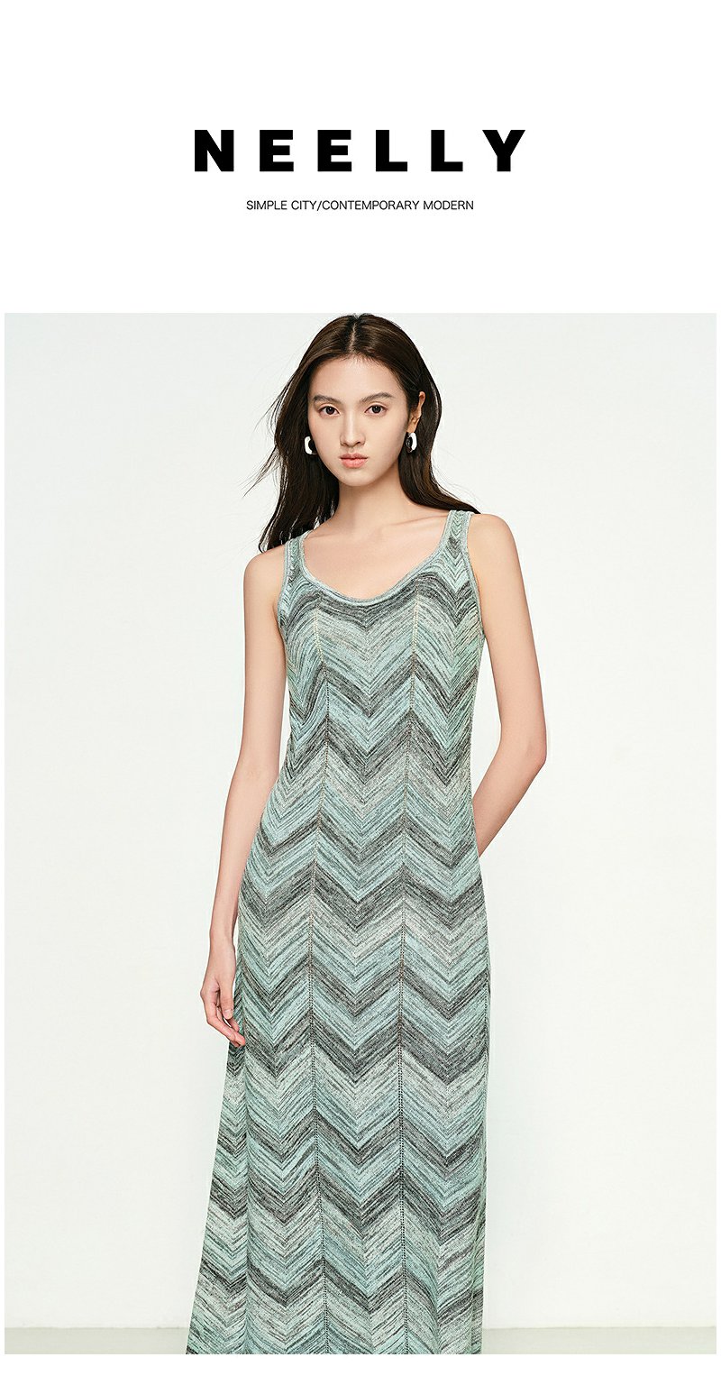 NEELLY纳俪商场同款春季新款显白灰绿条纹连衣裙女百搭修身吊带裙N25074Y04555
