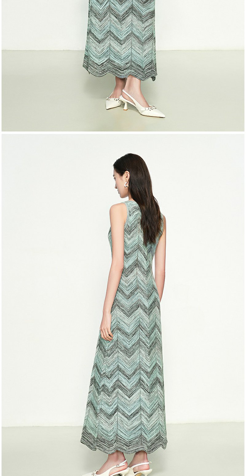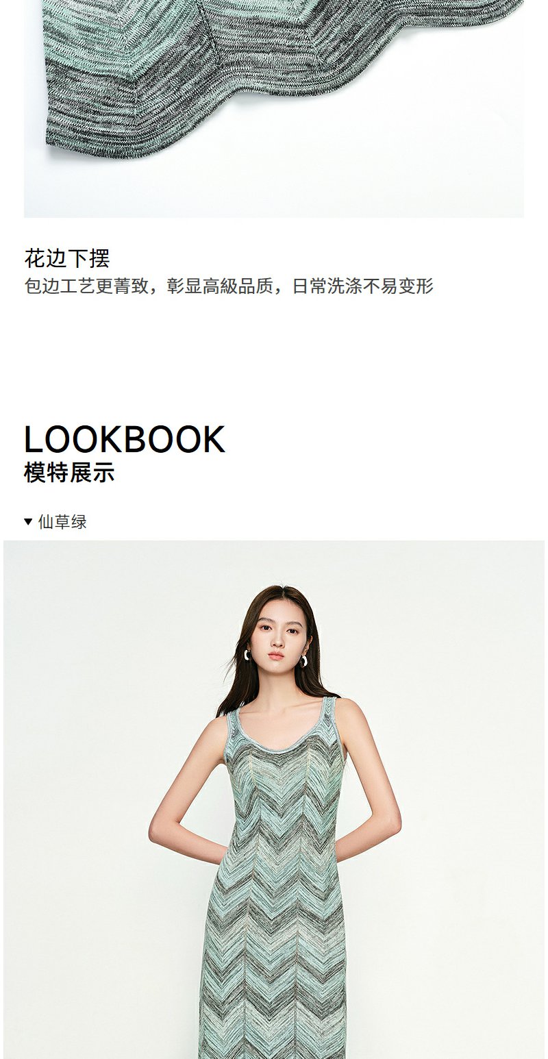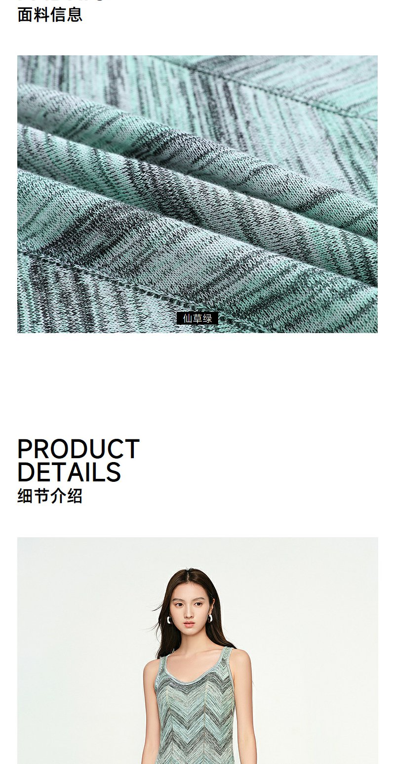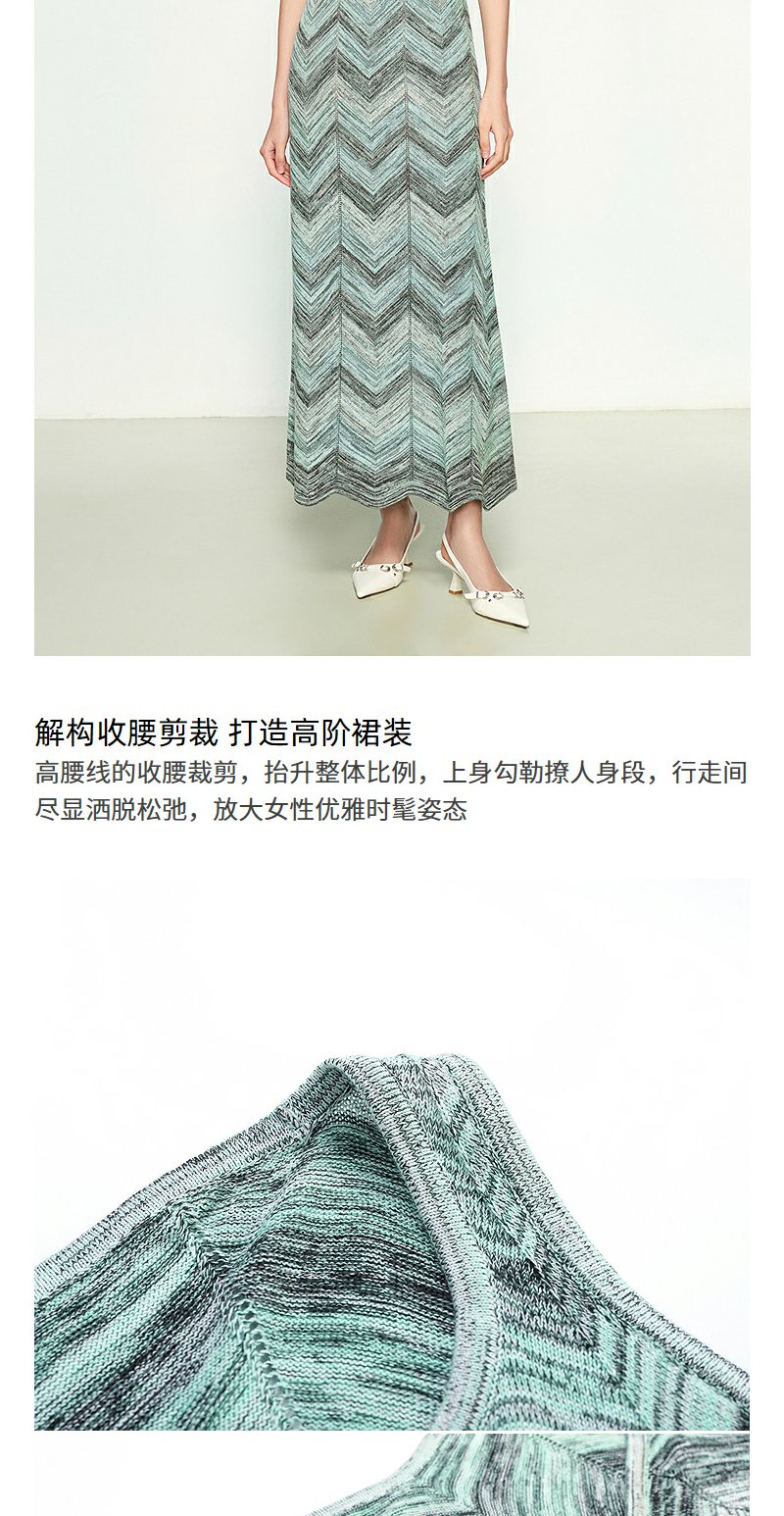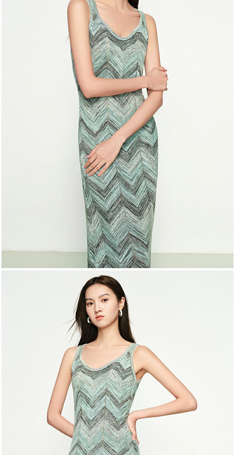 NEELLY纳俪商场同款春季新款显白灰绿条纹连衣裙女百搭修身吊带裙N25074Y04555