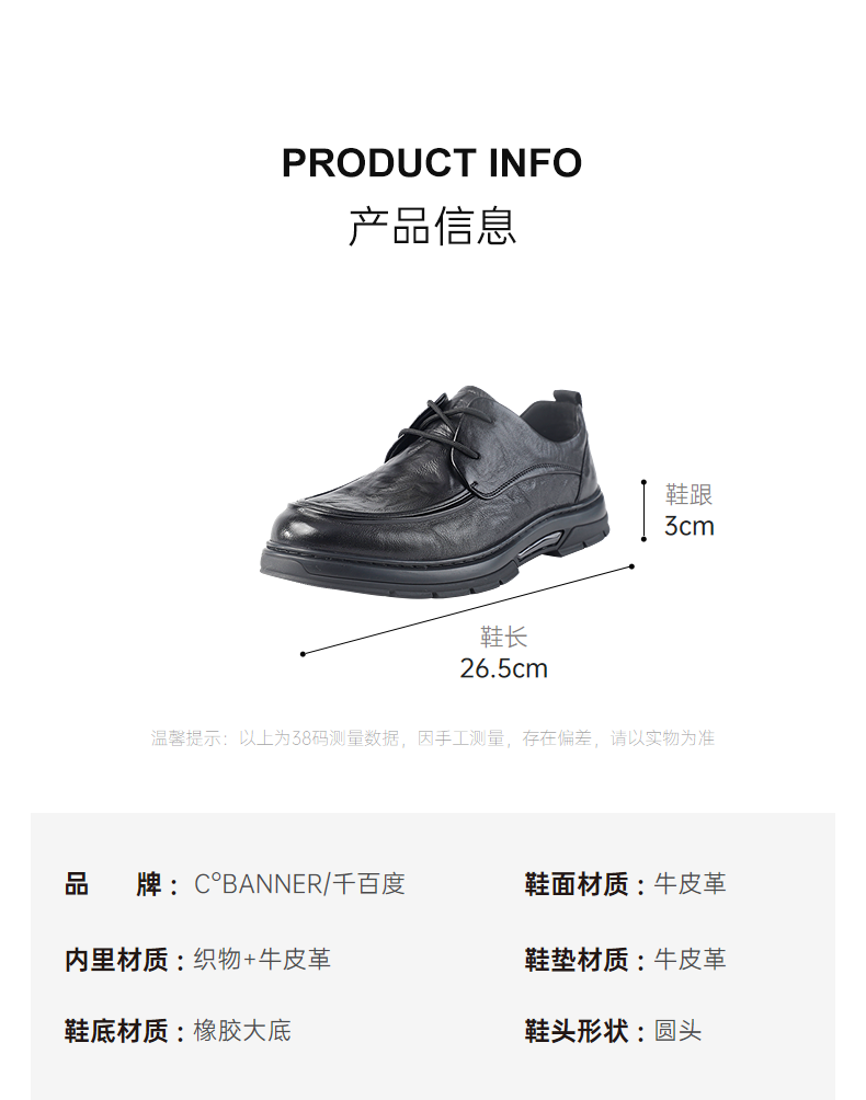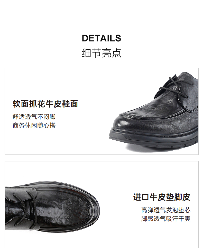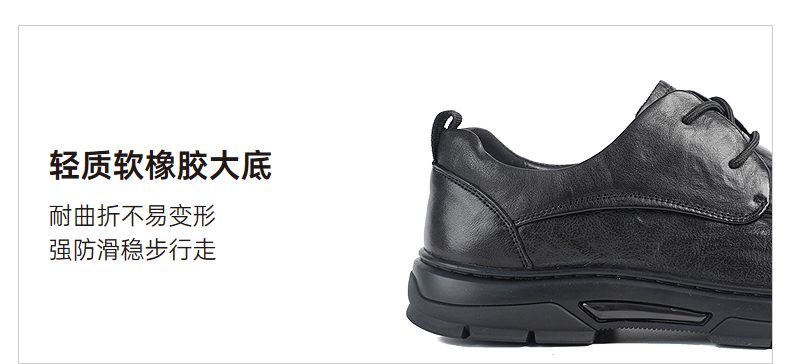 千百度秋季软面抓花牛皮鞋面轻软橡胶大底男鞋A25460712