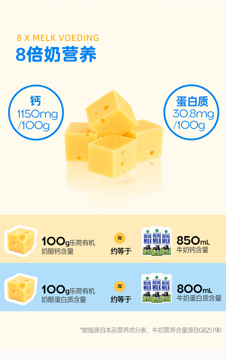 乐荷的有机原制奶酪是100%荷兰风味,荷兰传统发酵工艺,配料干净,有机奶香浓郁,口味偏咸;