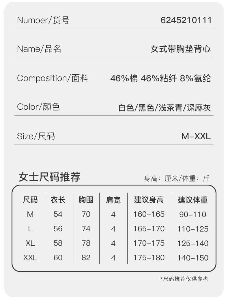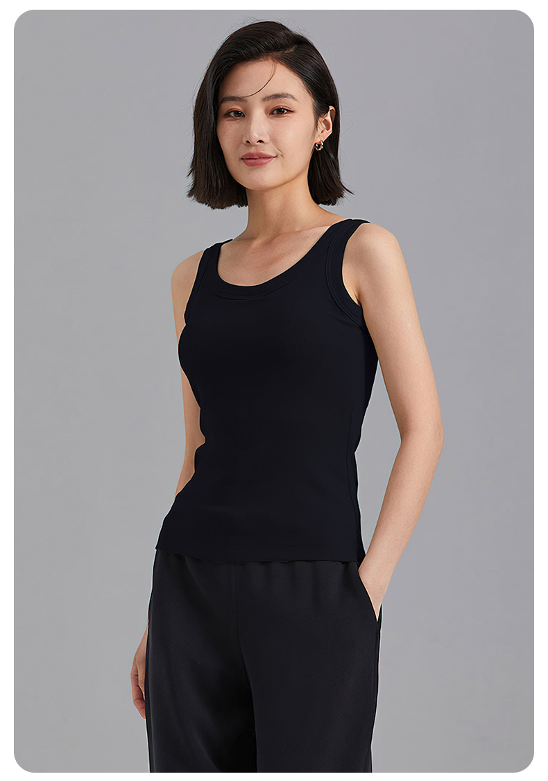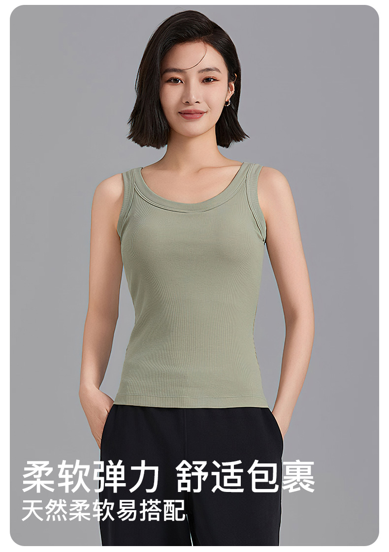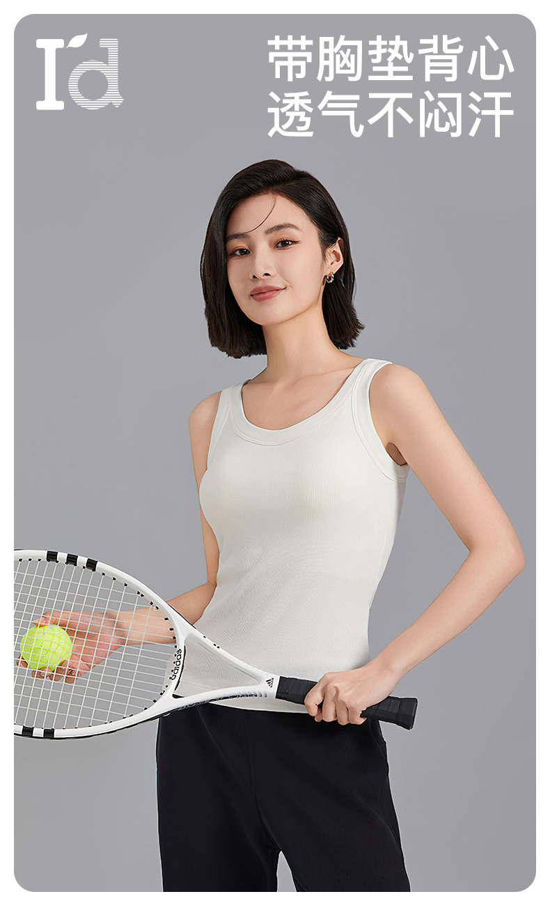 I'd爱帝女士罗纹背心一体杯带胸垫内搭打底背心