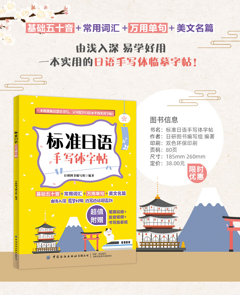 【2020新书】标准日语手写体字帖 基础日语手写体临摹字帖 标准日语临摹字帖手写体临摹练字初级词汇语法n1n2日语书日语五十音字帖