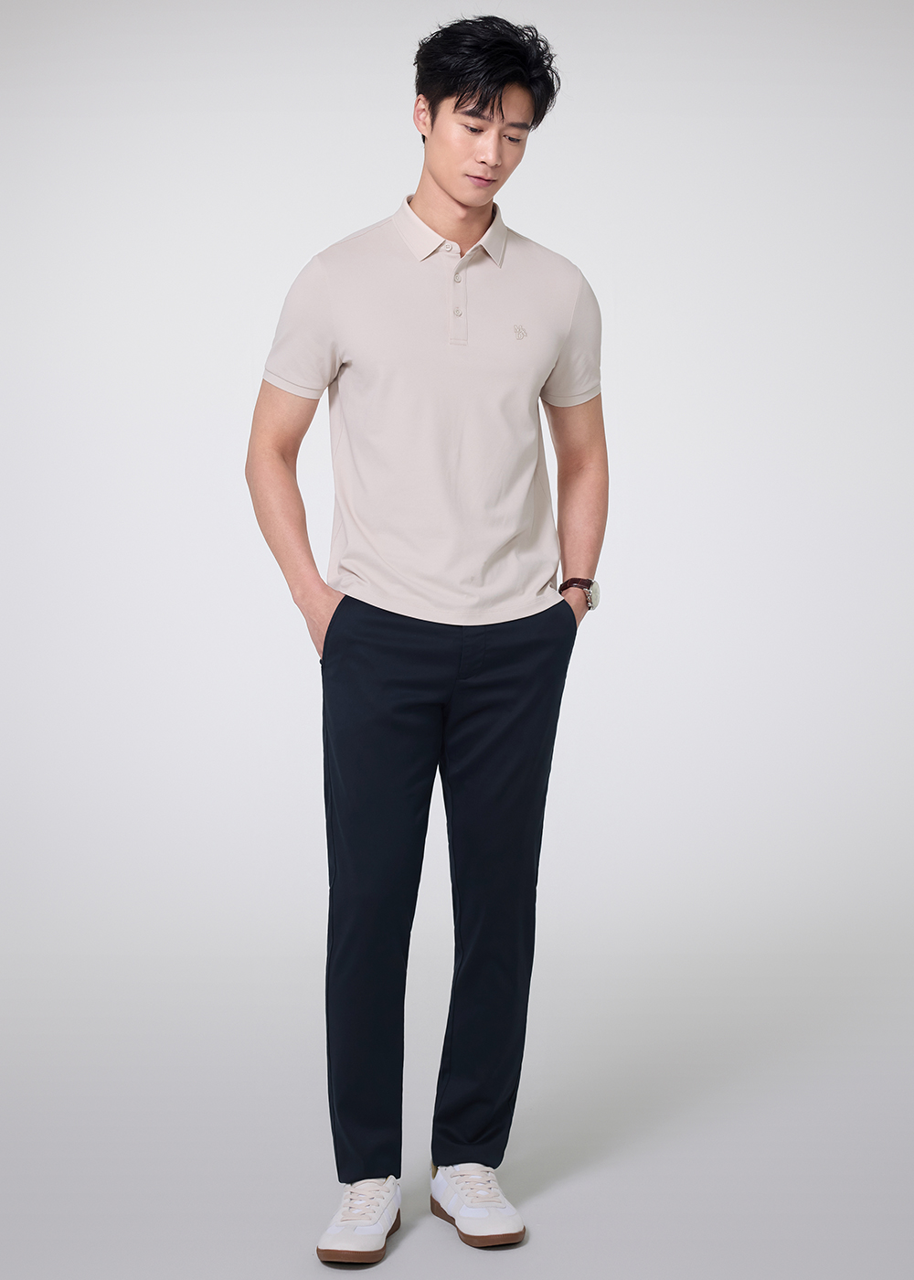 【名盾】轻呼吸长袖Polo衫,新疆长绒棉面料,舒适百搭M0CL11Y90A