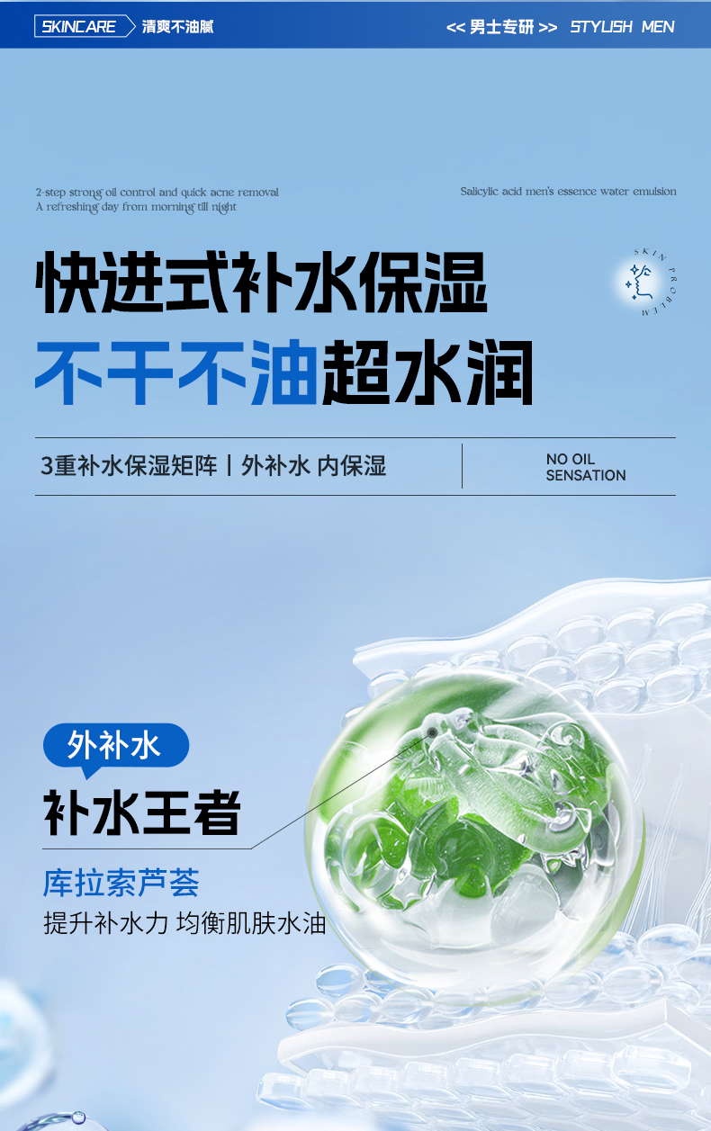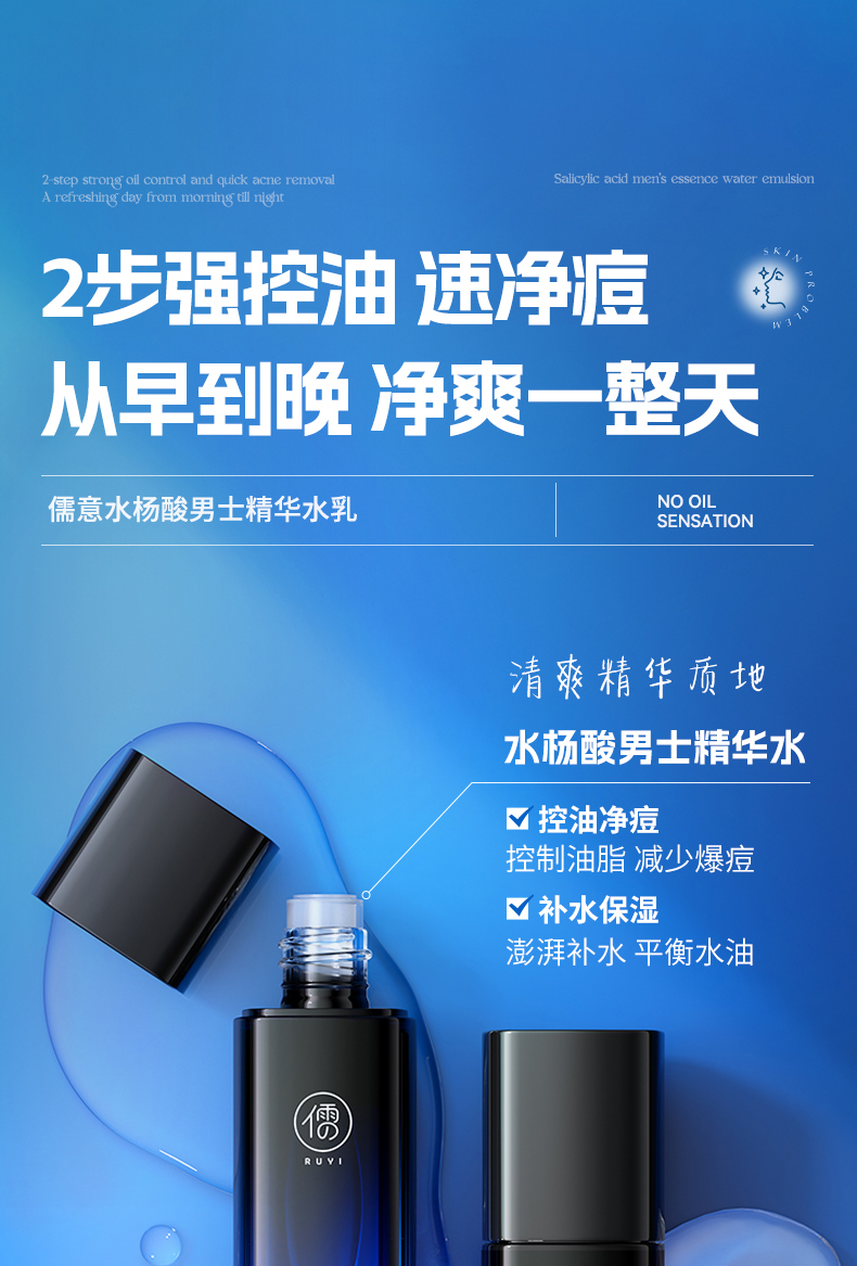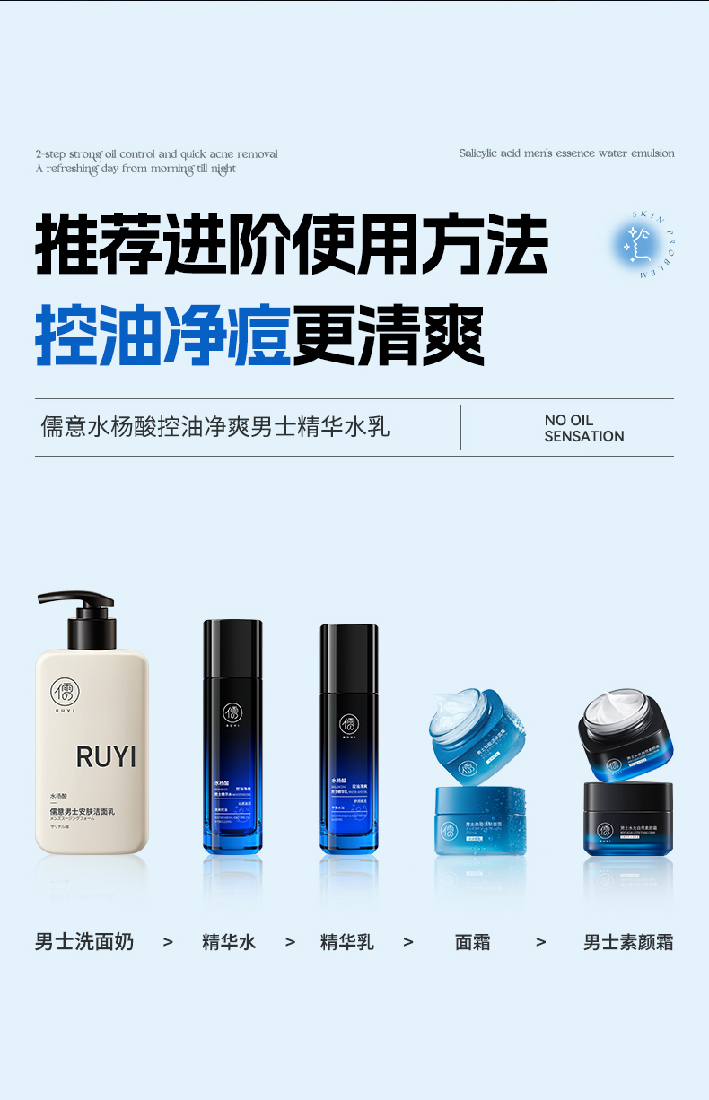 水杨酸男士水乳套装控油祛痘补水保湿收毛孔去黑白头男士护肤|儒意官方商城