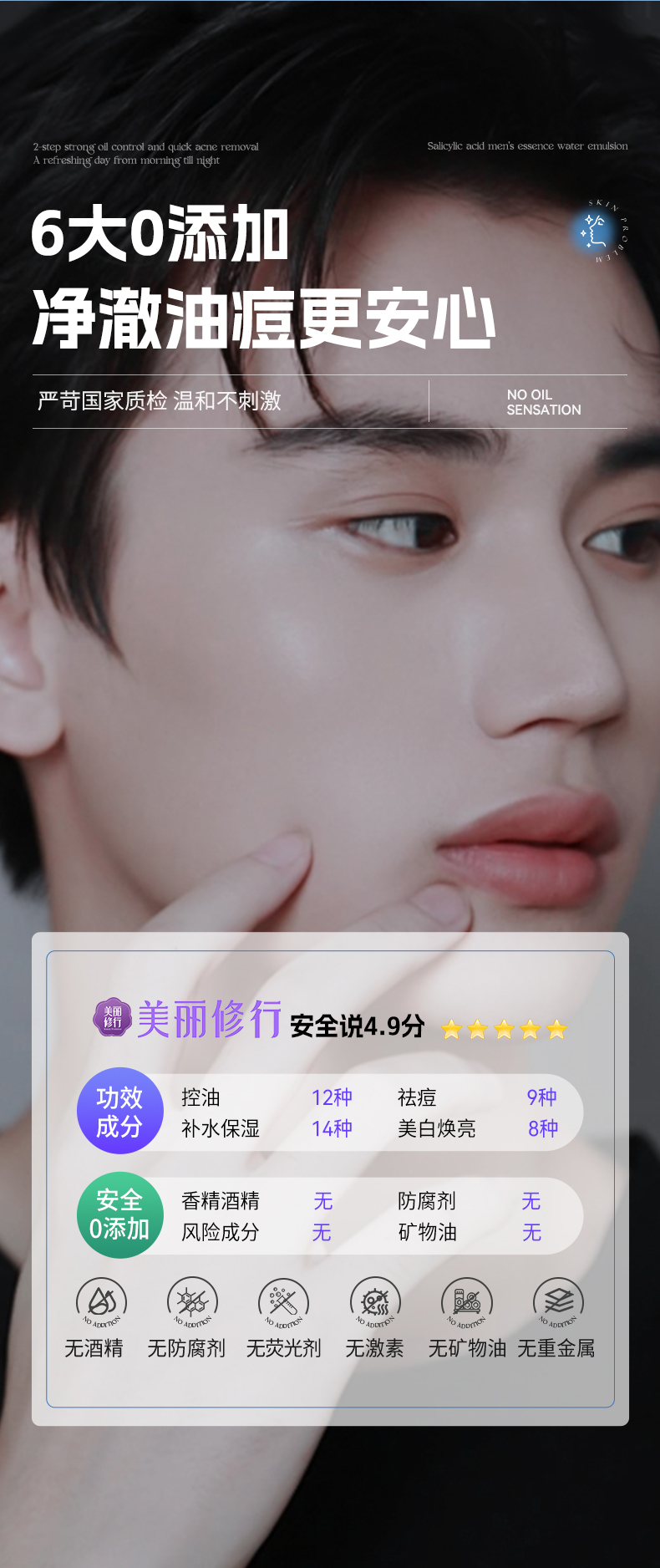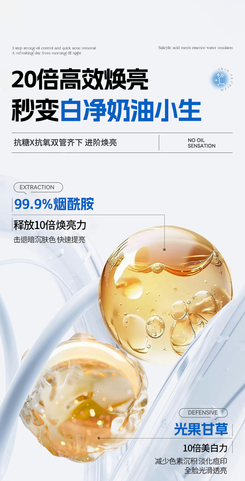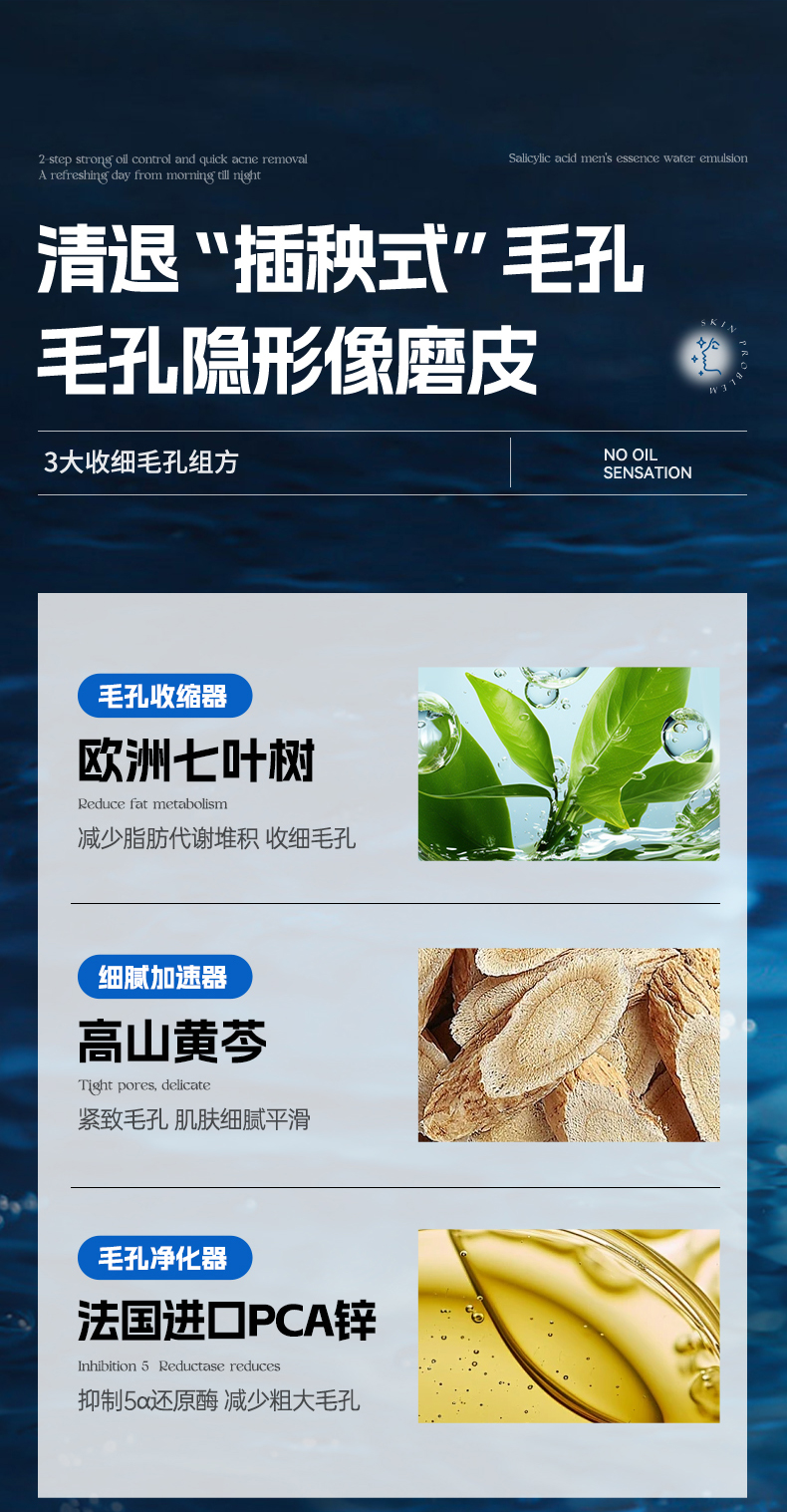 水杨酸男士水乳套装控油祛痘补水保湿收毛孔去黑白头男士护肤|儒意官方商城