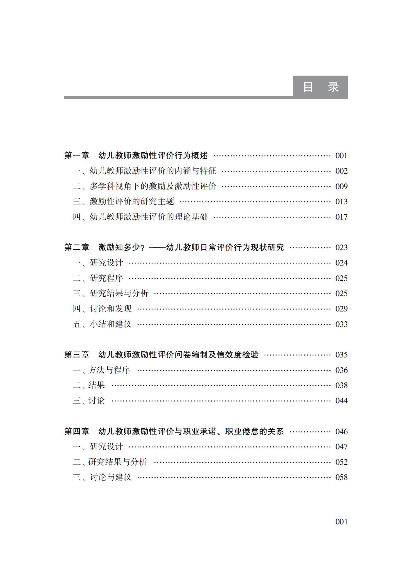 本书对幼儿教师激励性评价的内涵与特征、现状、影响因素以及激励性评价促进幼儿发展的内在机制,进行了系统的理论与实证研究。